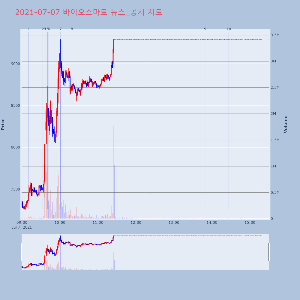 | 6 | 4 | 바이오스마트, +12.45% VI 발동바이오스마트(038460)가 VI가 발동했다. 전일 대 | 조선경제 | 바이오스마트 | 2021-07-07 09:36:44 |