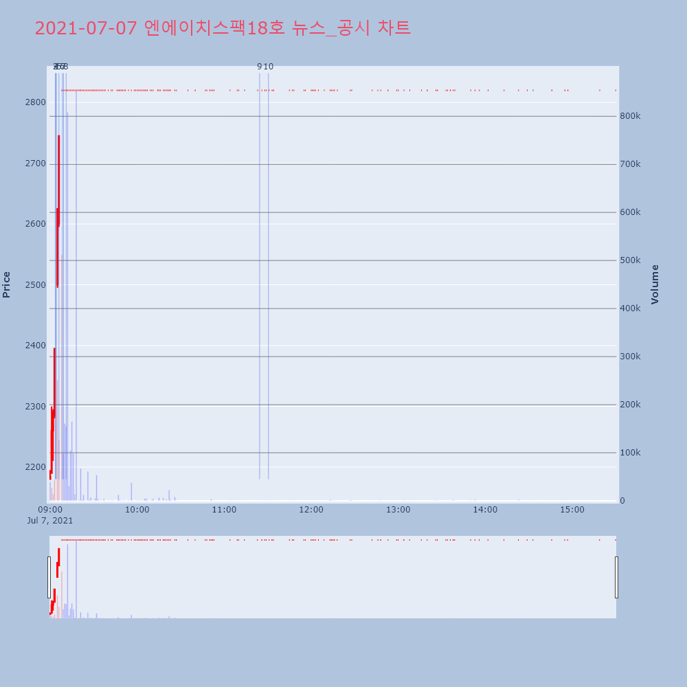 | 9 | 3 | 엔에이치스팩18호, +10.37% VI 발동엔에이치스팩18호(365590)가 VI가 발동했다. 전 | 조선경제 | 엔에이치스팩18호 | 2021-07-07 09:03:45 |