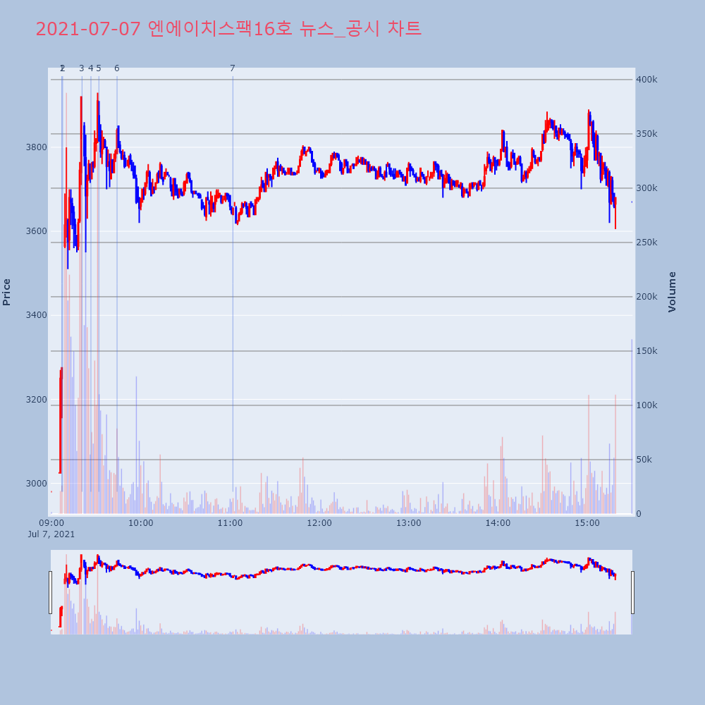 | 5 | 2 | 엔에이치스팩16호, +8.26% VI 발동엔에이치스팩16호(353190)가 VI가 발동했다. 전 | 조선경제 | 엔에이치스팩16호 | 2021-07-07 09:07:30 |