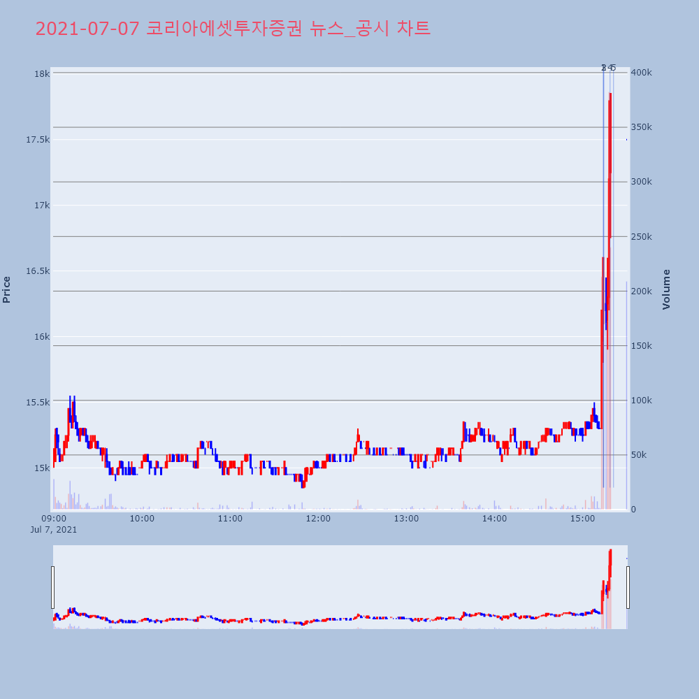 | 3 | 2 | 코리아에셋투자증권, +8.20% VI 발동코리아에셋투자증권(190650)이 VI가 발동했다. 전 | 조선경제 | 코리아에셋투자증권 | 2021-07-07 15:14:21 |