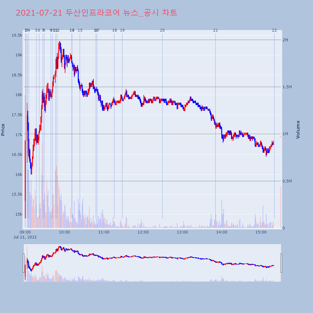 | 25 | 4 | 두산인프라코어(042670) 분할합병 후 거래재개 첫날 급등 +10.75% 제목 : 두산인프라코어(042670)분할합병 후 거래재 | 인포스탁 | 두산인프라코어 | 2021-07-21 09:05:27 |