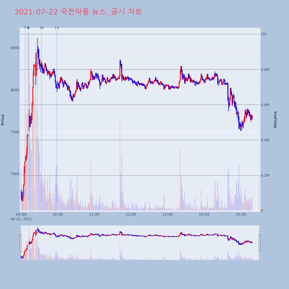 | 9 | 2 | 국전약품, +12.18% VI 발동국전약품(307750)이 VI가 발동했다. 전일 대비 | 조선경제 | 국전약품 | 2021-07-21 09:20:46 |