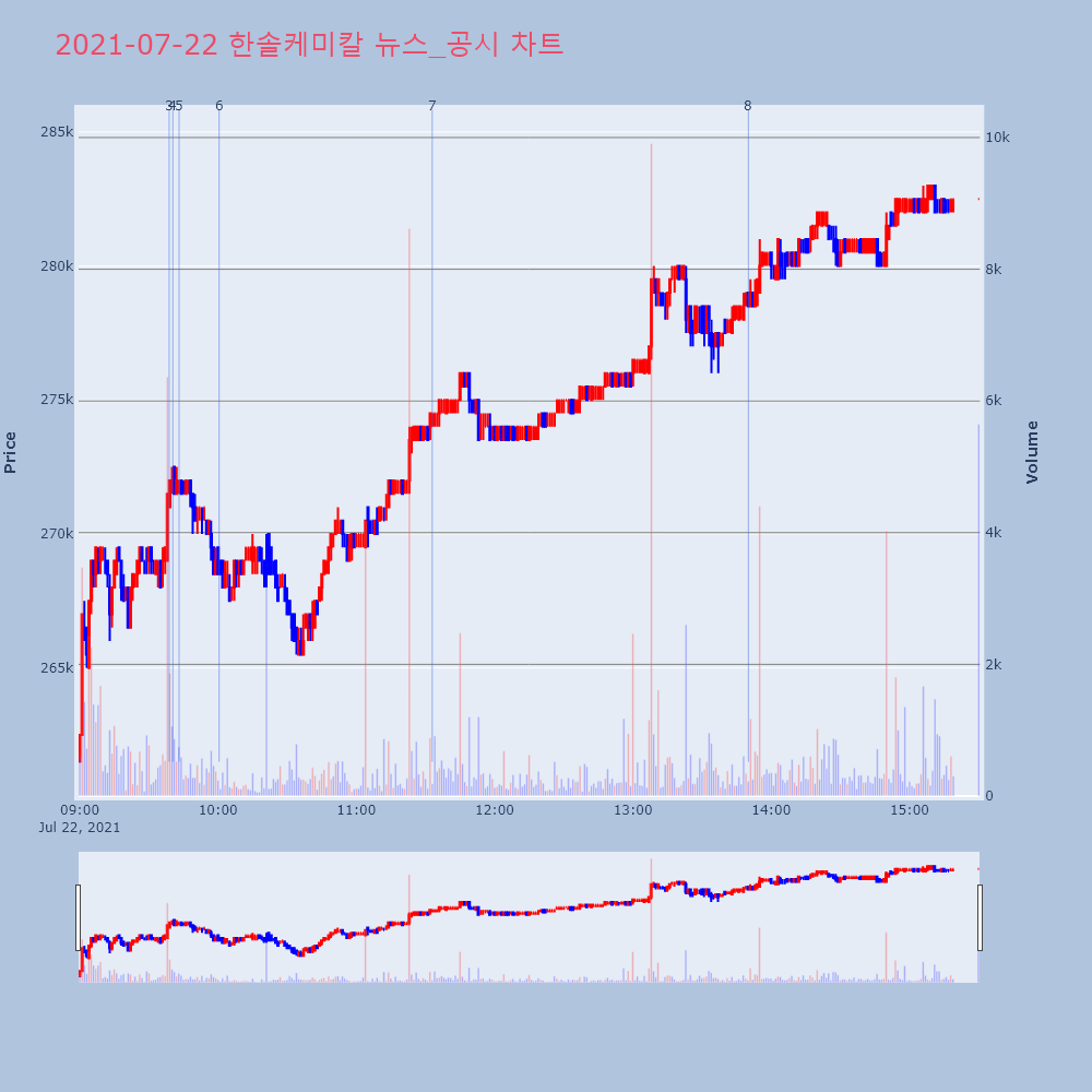| 2 | 6 | 한솔케미칼(014680), 52주 신고가 한솔케미칼(014680)은 당일 272,500원까지 오 | 헤럴드경제 | 한솔케미칼 | 2021-07-22 10:00:28 |