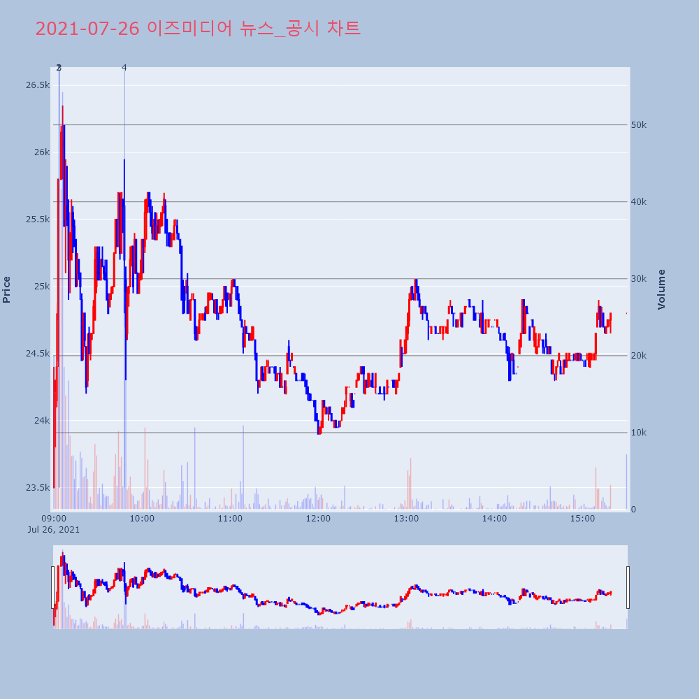 | 3 | 1 | 이즈미디어, +13.44% VI 발동이즈미디어(181340)가 VI가 발동했다. 전일 대비 | 조선경제 | 이즈미디어 | 2021-07-26 09:03:30 |