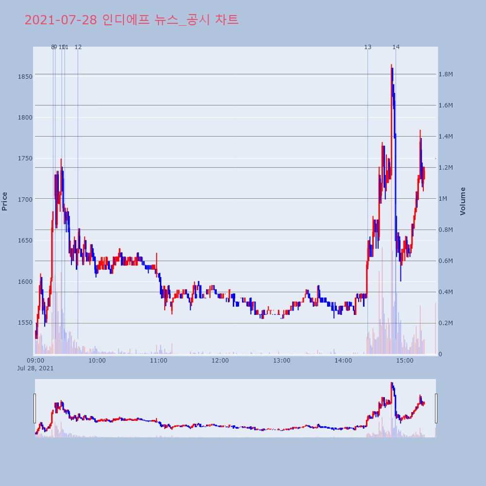 | 9 | 5 | [특징주] 인디에프, 남북 통신연락선 복원에 급등 제목 : [특징주] 인디에프, 남북 통신연락선 복원에 | 인포스탁 | 인디에프 | 2021-07-27 11:19:03 |