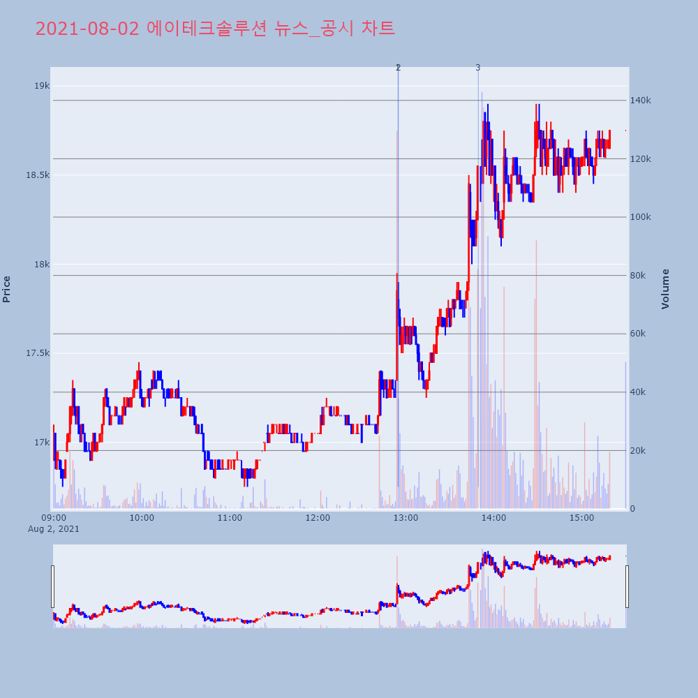 3 | 에이테크솔루션, +9.44% VI 발동에이테크솔루션(071670)이 VI가 발동했다. 전일 | 조선경제 | 에이테크솔루션 | 2021-08-02 13:49:27 |