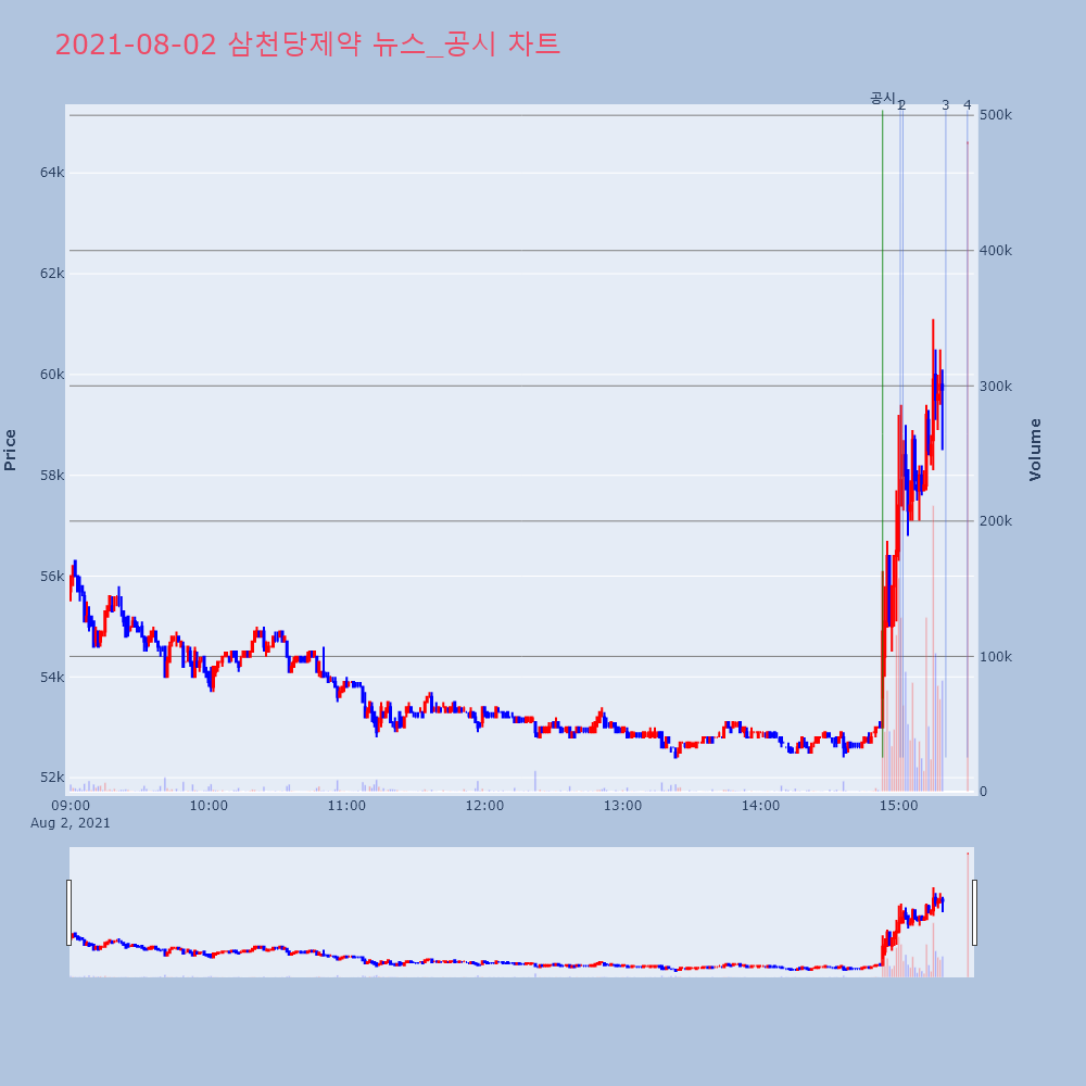 | 1 | 삼천당제약(주) [투자주의]종가급변종목 | KOSCOM | 2021.08.02 |