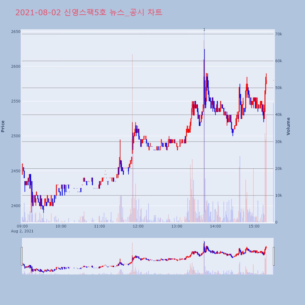 | 0 | 신영해피투모로우제5호기업인수목적 주식회사 (예고)단기과열종목(3거래일 ... | KOSCOM | 2021.05.31 |