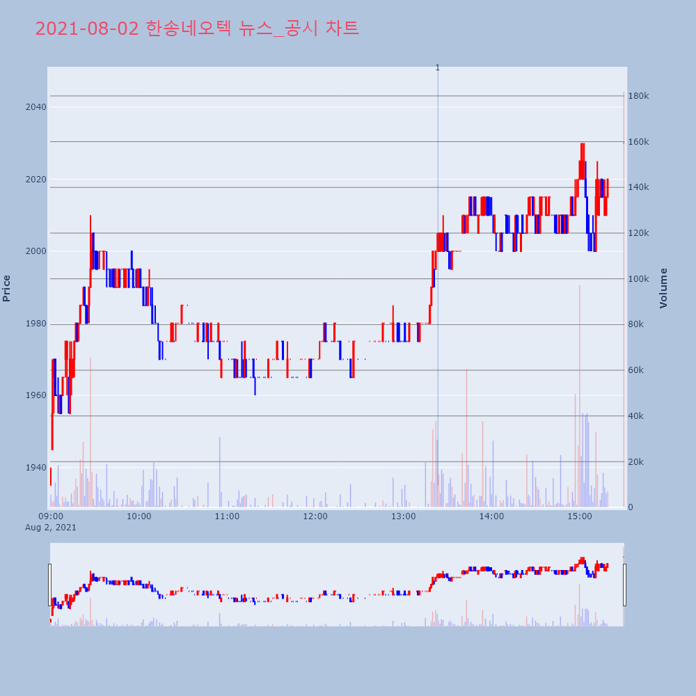 | 2021-08-02 16:30:00 | 코스닥 | 01101722 | 한송네오텍 | 20210802900290 | 단일판매ㆍ공급계약체결 | 한송네오텍 | 한국거래소 코스닥시장본부 |