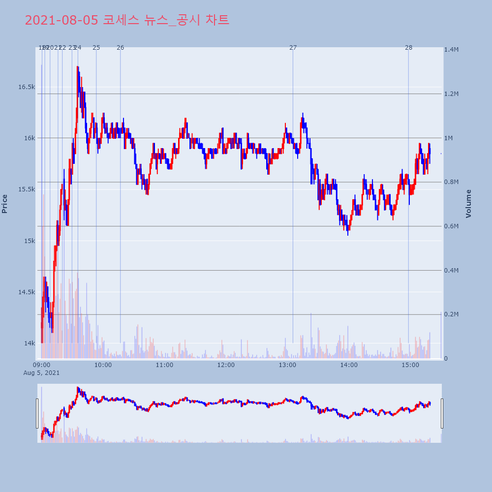| 14 | [fnRASSI]오늘의 상한가, 코세스 29.6% ↑ 04일 코세스(089890)등이 상한가를 기록했다. 특 | 파이낸셜 | 코세스 | 2021-08-04 15:43:47 |