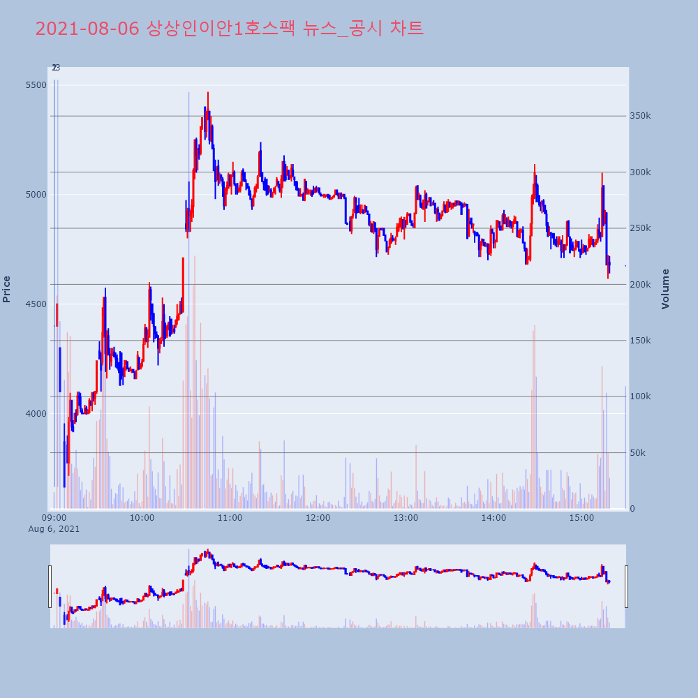1 | 상상인이안1호스팩, 0.00% VI 발동상상인이안1호스팩(307870)이 VI가 발동했다. 현 | 조선경제 | 상상인이안1호스팩 | 2021-08-06 09:00:14 |