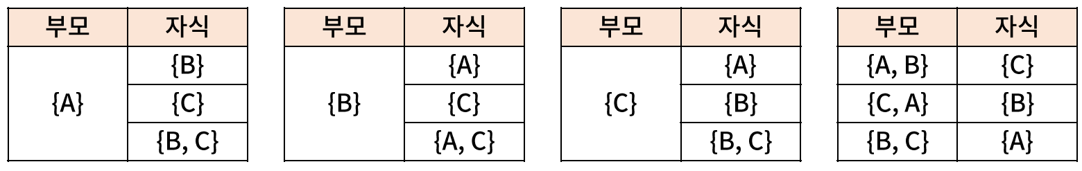 . A 와 B 는 모두 공집합이 아닌 집합이며, A n B = 공집합 을 만족함 (즉, 공통되는 요소가 없다.)