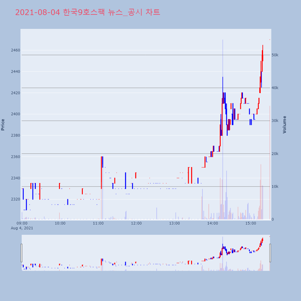 | 0 | 한국제9호기업인수목적 주식회사 [투자주의]단일계좌 거래량 상위종목 | KOSCOM | 2021.06.01 |