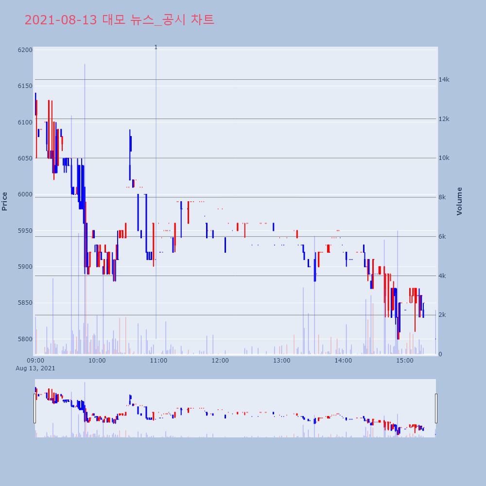 | 20210813 시간외 특징주 판타지오,LX세미콘,현대바이오랜드,서울리거,사조대림,HB솔루션,미래에셋생명, (0) | 2021.08.13 |