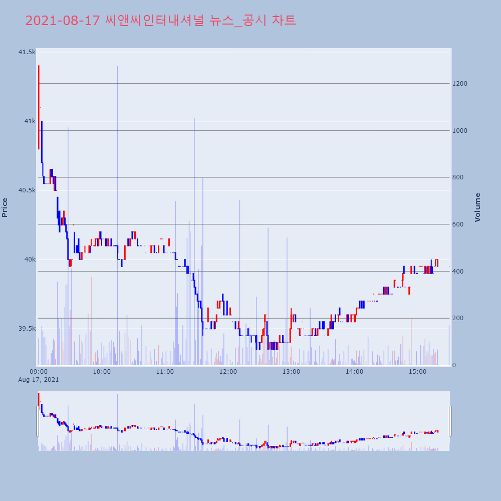| 2 | [특징주] 상장 첫 날 씨앤씨인터내셔널, 12%대 급락...시초가는 ... | 파이낸셜뉴스 | 2021.05.17 09:27 |