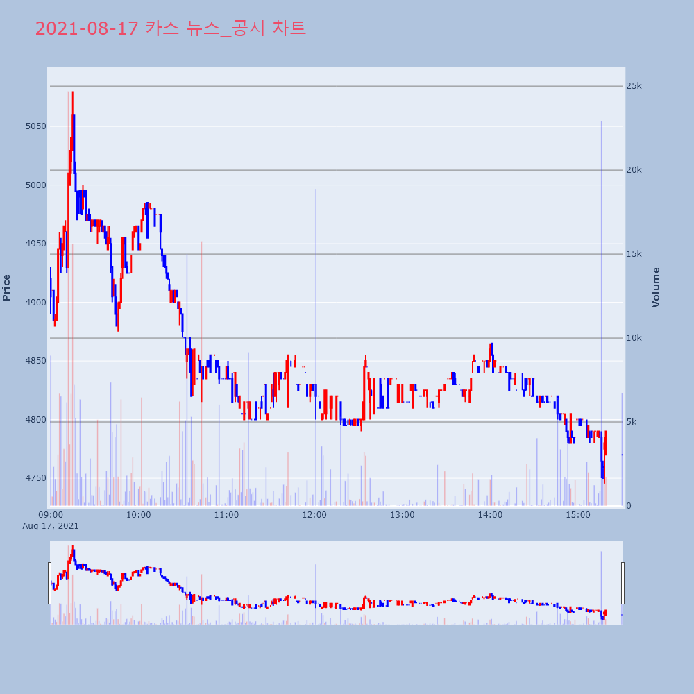 | 4 | 거래소, 카스에 시황 급등 관련 조회공시 요구 | 이데일리 | 2021.05.17 18:14 |