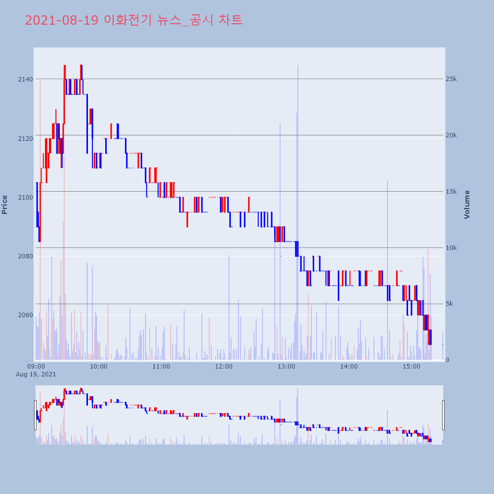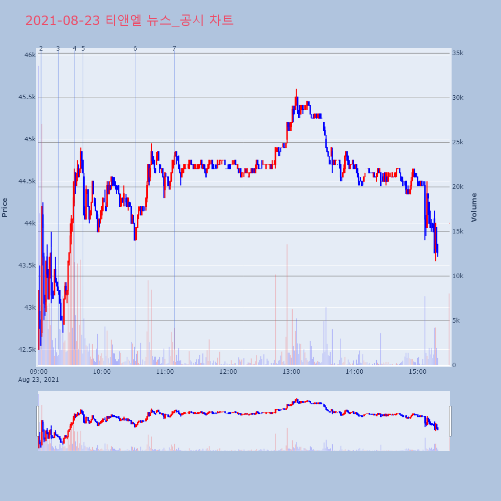| 7 | [이시각 상한가] 티비씨(▲340) - 24일 오전 9시4분[이투데이/e2BOT 기자(e2bot@etoday.co | 이투데이 | 티비씨 | 2021-08-24 09:05:03 |
