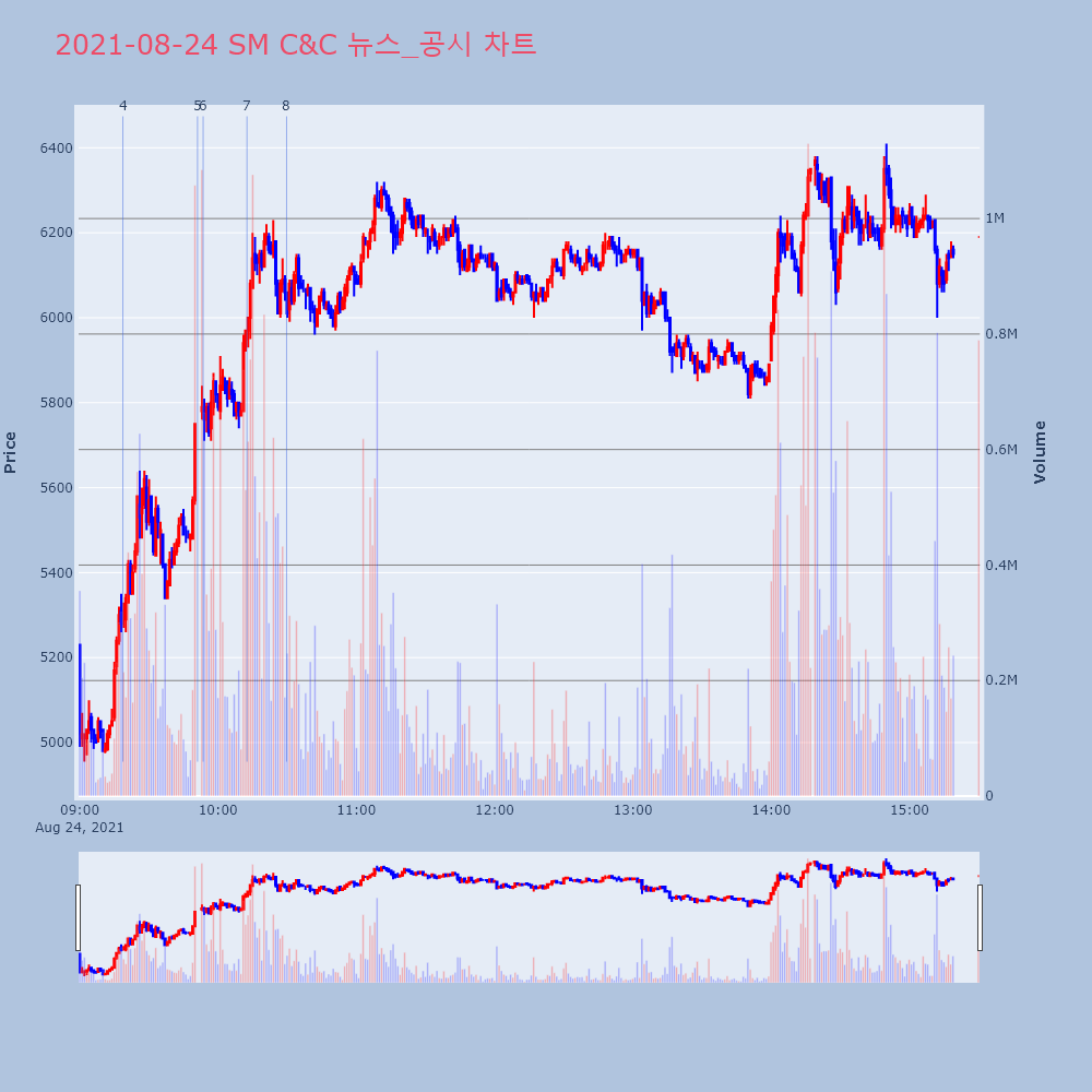 | 5 | SM C&C, +11.00% VI 발동SM CC 연관 테마IHQ(003560), 초록뱀미디어 | 조선경제 | SM C&C | 2021-08-24 09:51:05 |
