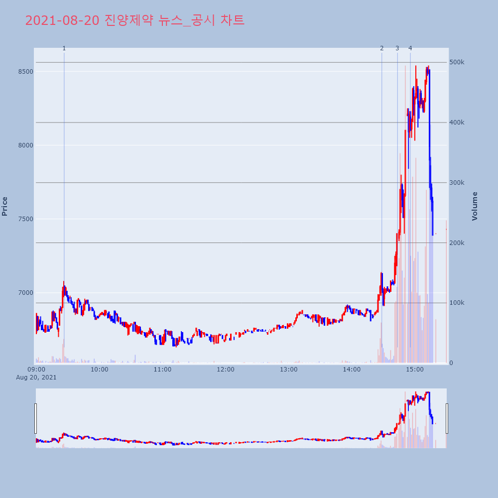 100억원 규모 신규 나노케이지 기술 기반 면역 항암치료제 기술도입 계약 체결 및 코로나19 다가백신 개발 추진 소식 등에 급등 [내용출처: 인포스탁 infostock]