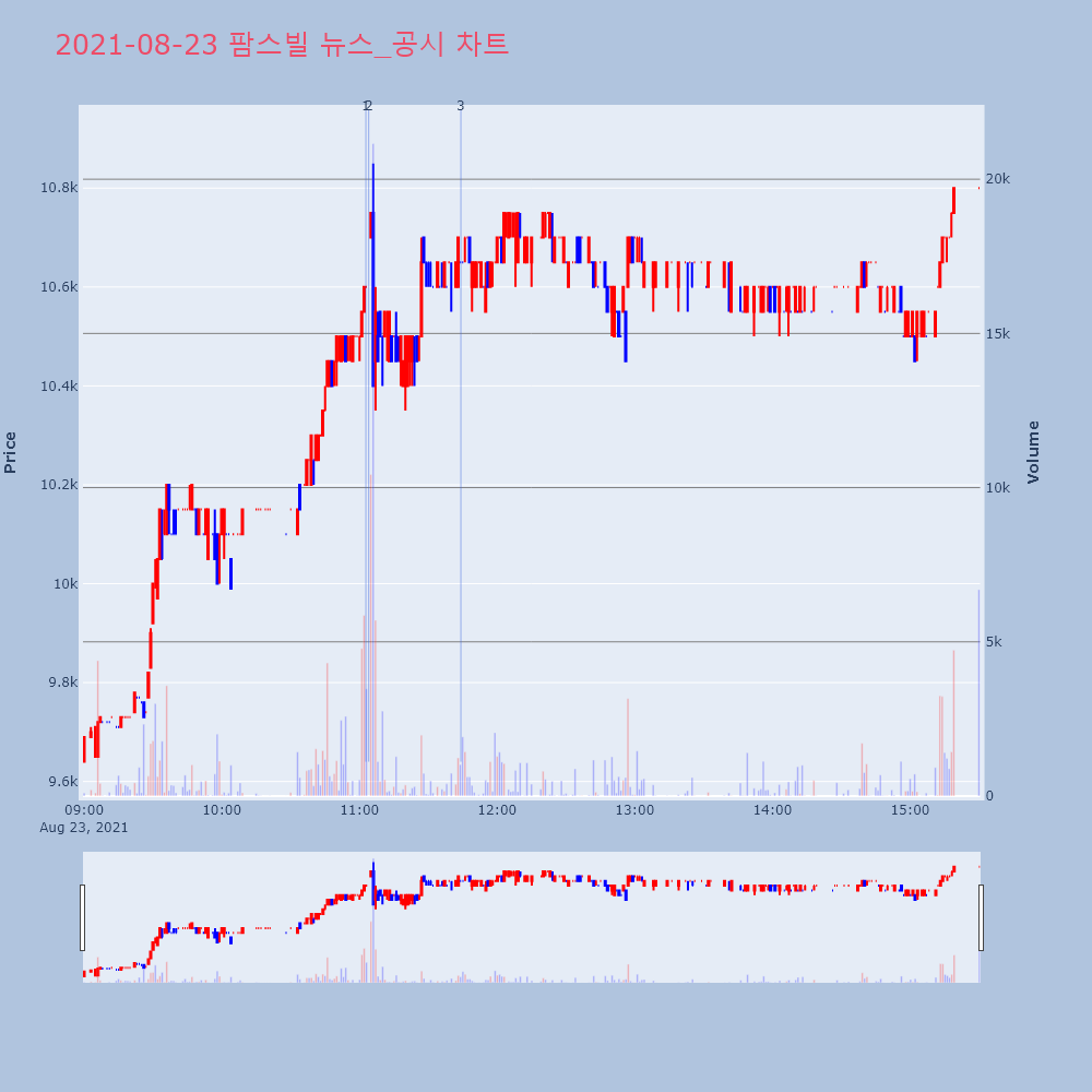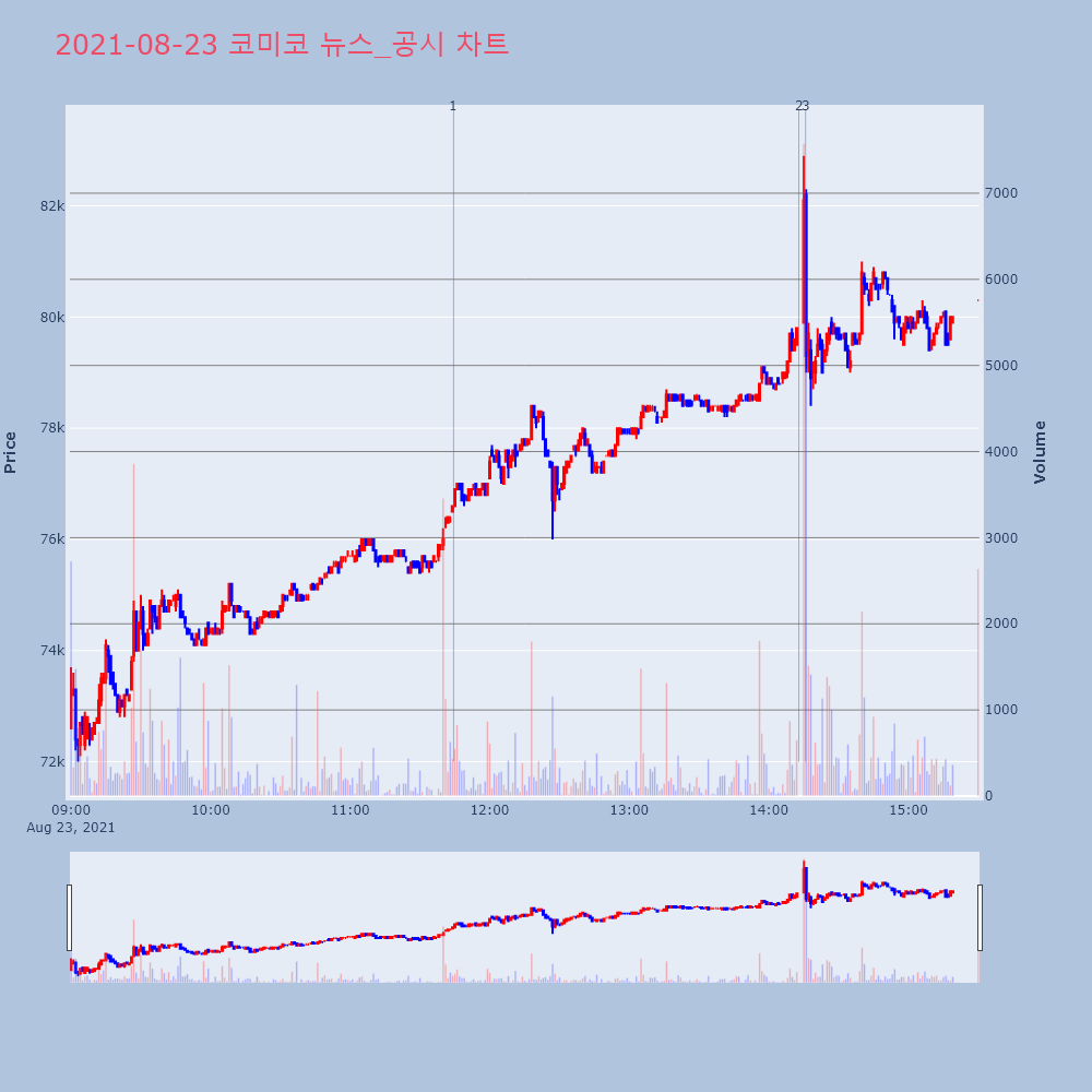 | 3 | (주)아즈텍더블유비이 (예고)단기과열종목(3거래일 단일가매매) 지정예고 | KOSCOM | 2021.07.23 |