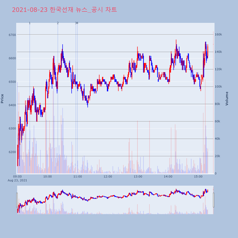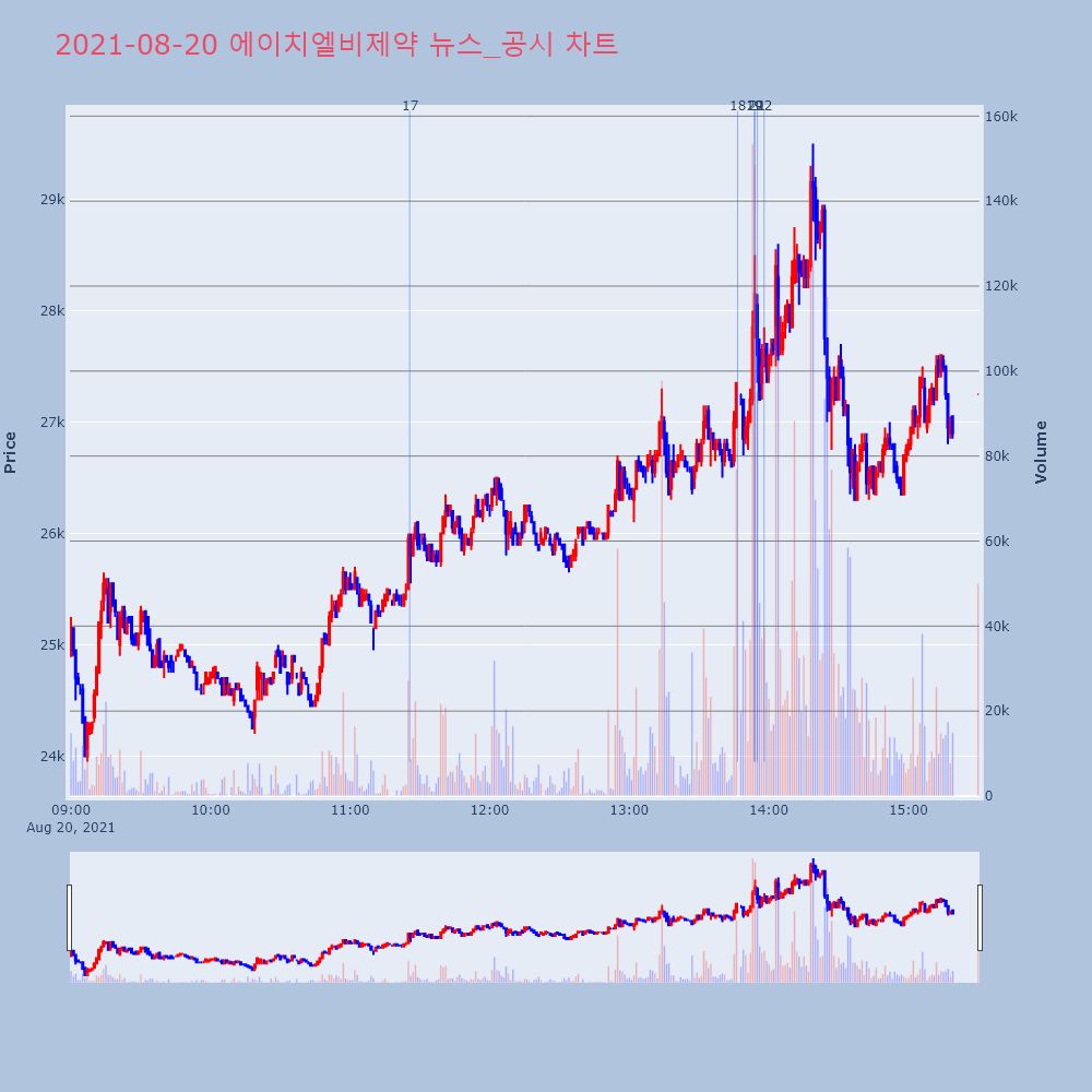 | 4 | 아즈텍WB, +12.15% VI 발동아즈텍WB(032080)가 VI가 발동했다. 전일 대비 | 조선경제 | 아즈텍WB | 2021-08-24 11:10:37 |