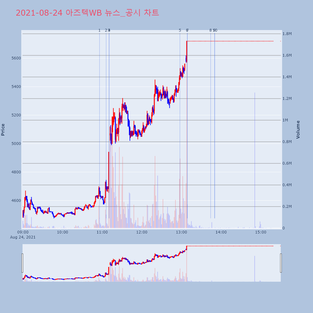 | 3 | [특징주] 아즈텍WB, "큐라티스의 국산 mRNA백신 개발 가장 빠르다"는 소식[이투데이/조성진 기자(csjjin2002@etoday | 이투데이 | 아즈텍WB | 2021-08-24 11:10:25 |