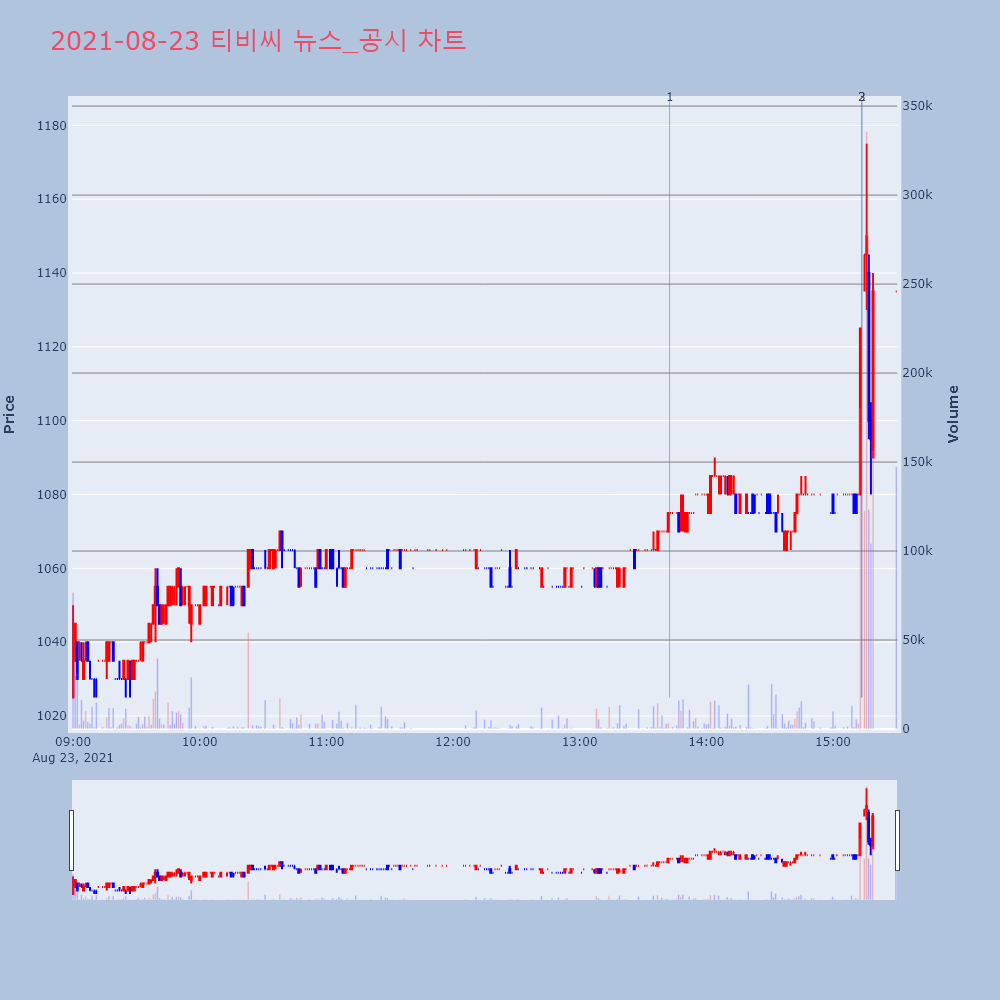 | 3 | 티비씨, +11.39% VI 발동티비씨(033830)가 VI가 발동했다. 전일 대비 1 | 조선경제 | 티비씨 | 2021-08-23 15:13:41 |