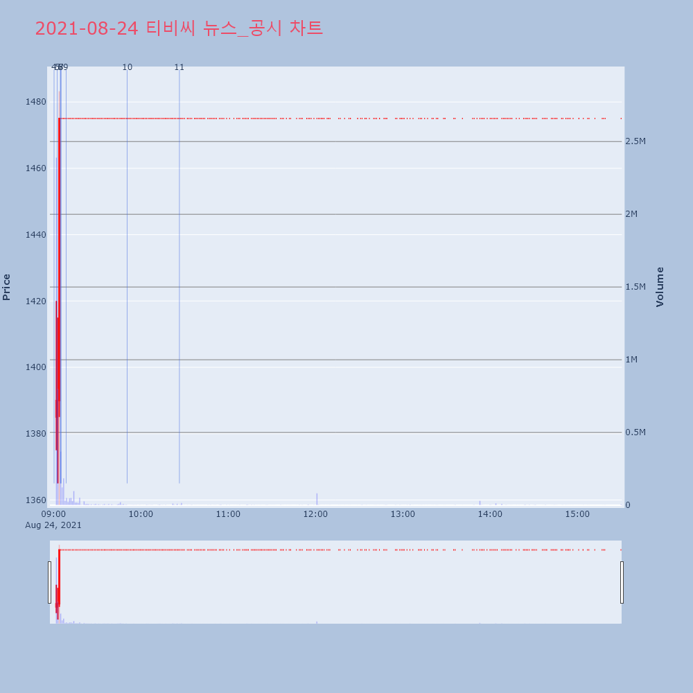 | 4 | 티비씨, 0.00% VI 발동티비씨(033830)가 VI가 발동했다. 현재 1,13 | 조선경제 | 티비씨 | 2021-08-24 09:00:24 |