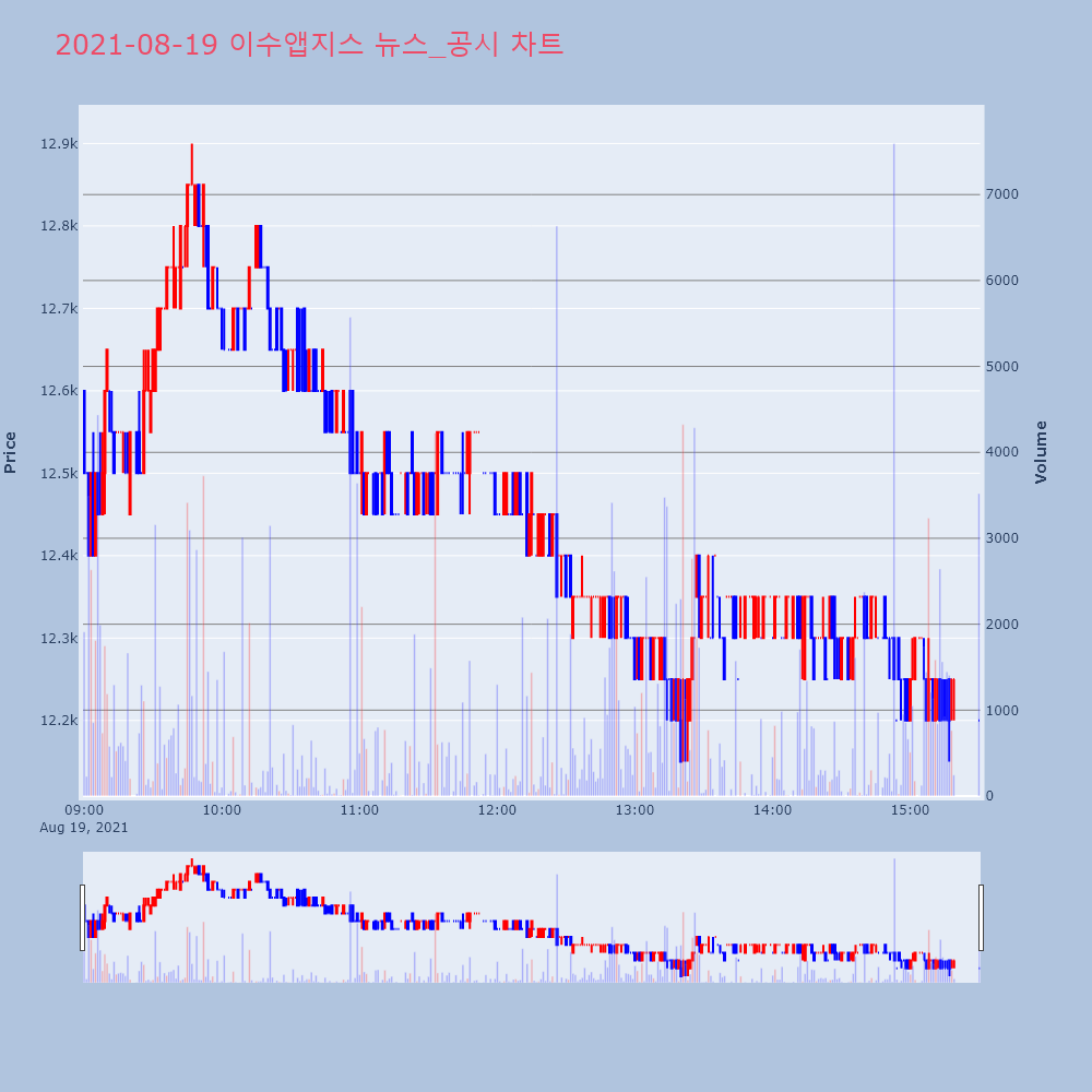 | 7 | [이시각 상한가] 아즈텍WB(▲1315) - 24일 오후 13시8분[이투데이/e2BOT 기자(e2bot@etoday.co | 이투데이 | 아즈텍WB | 2021-08-24 13:09:03 |