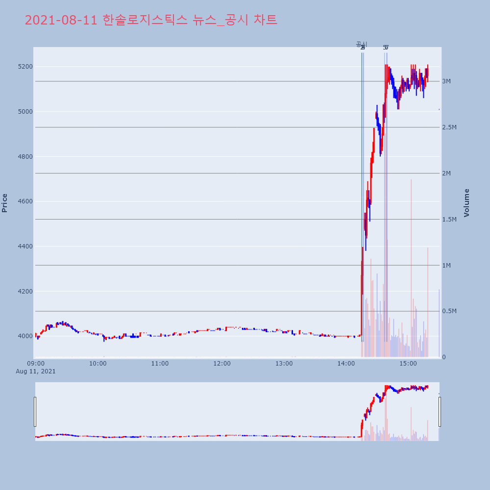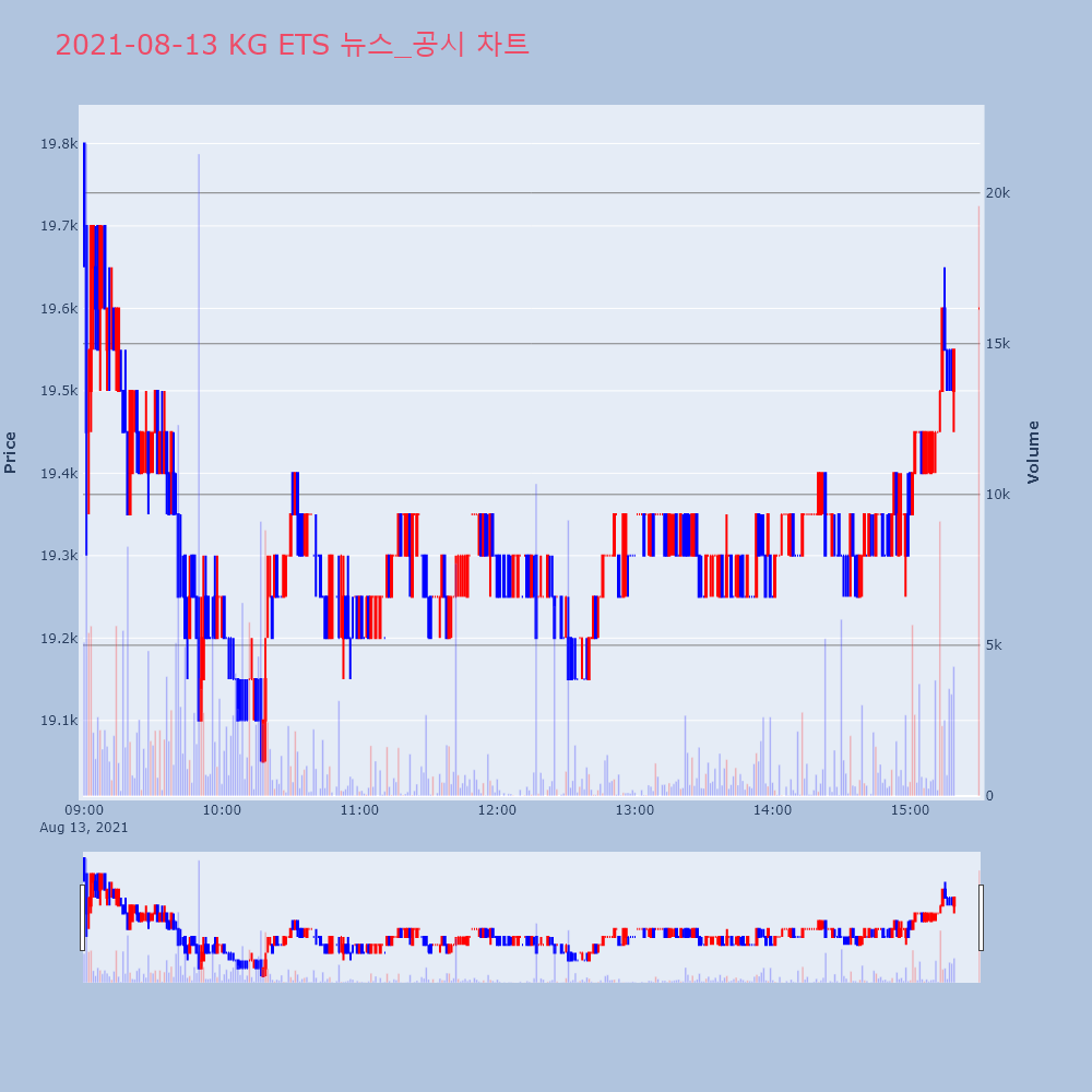 장 마감 후 자회사 KG ETS, 반기보고서를 통해 2분기 실적 발표, 연결기준 매출액 8,803.38억원(전년동기대비 +2,833.25%), 영업익 997.12억원(전년동기대비 +2,446.26%) [내용출처: 인포스탁 infostock]