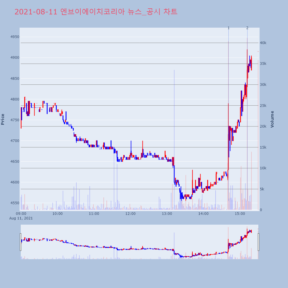 장 마감 후 반기보고서를 통해 2분기 실적 발표, 연결기준 매출액 8,803.38억원(전년동기대비 +2,833.25%), 영업익 997.12억원(전년동기대비 +2,446.26%) [내용출처: 인포스탁 infostock]