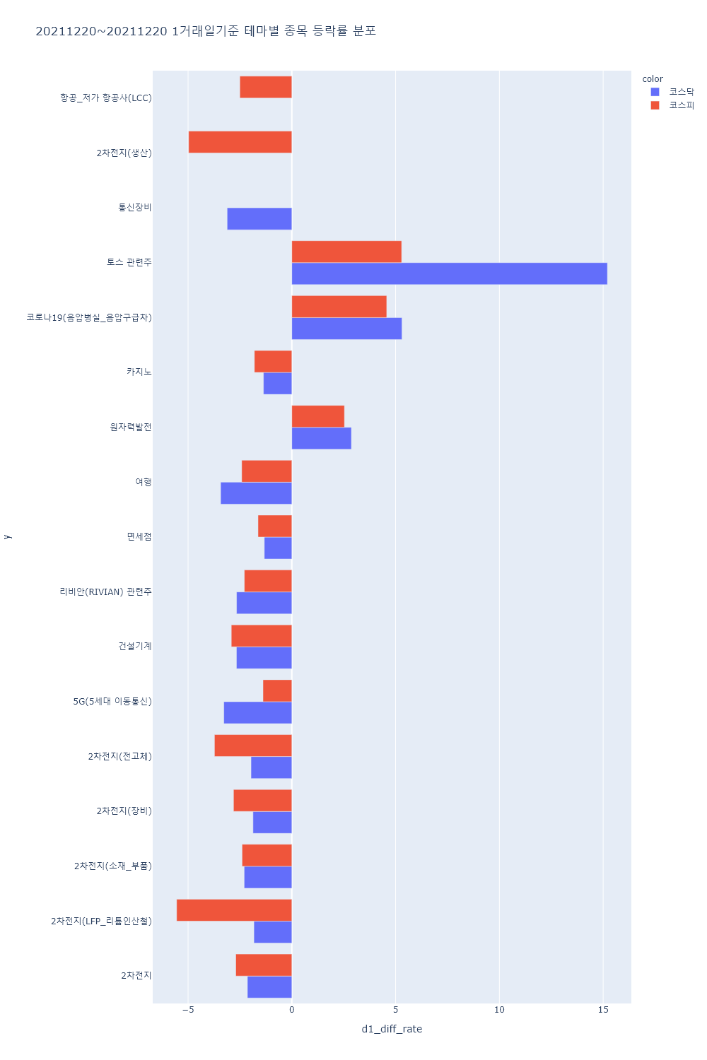 ▷반면, 오미크론 글로벌 확산 지속 속 재봉쇄 우려 부각 등에 여행, 항공/저가 항공사, 카지노, 면세점 등 소비 관련 테마 하락.