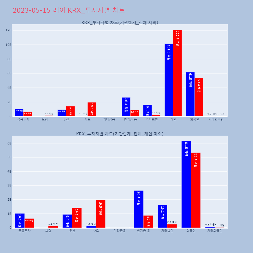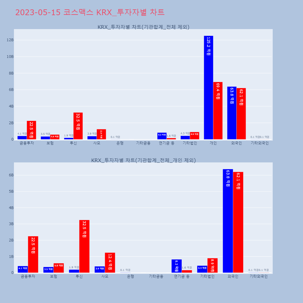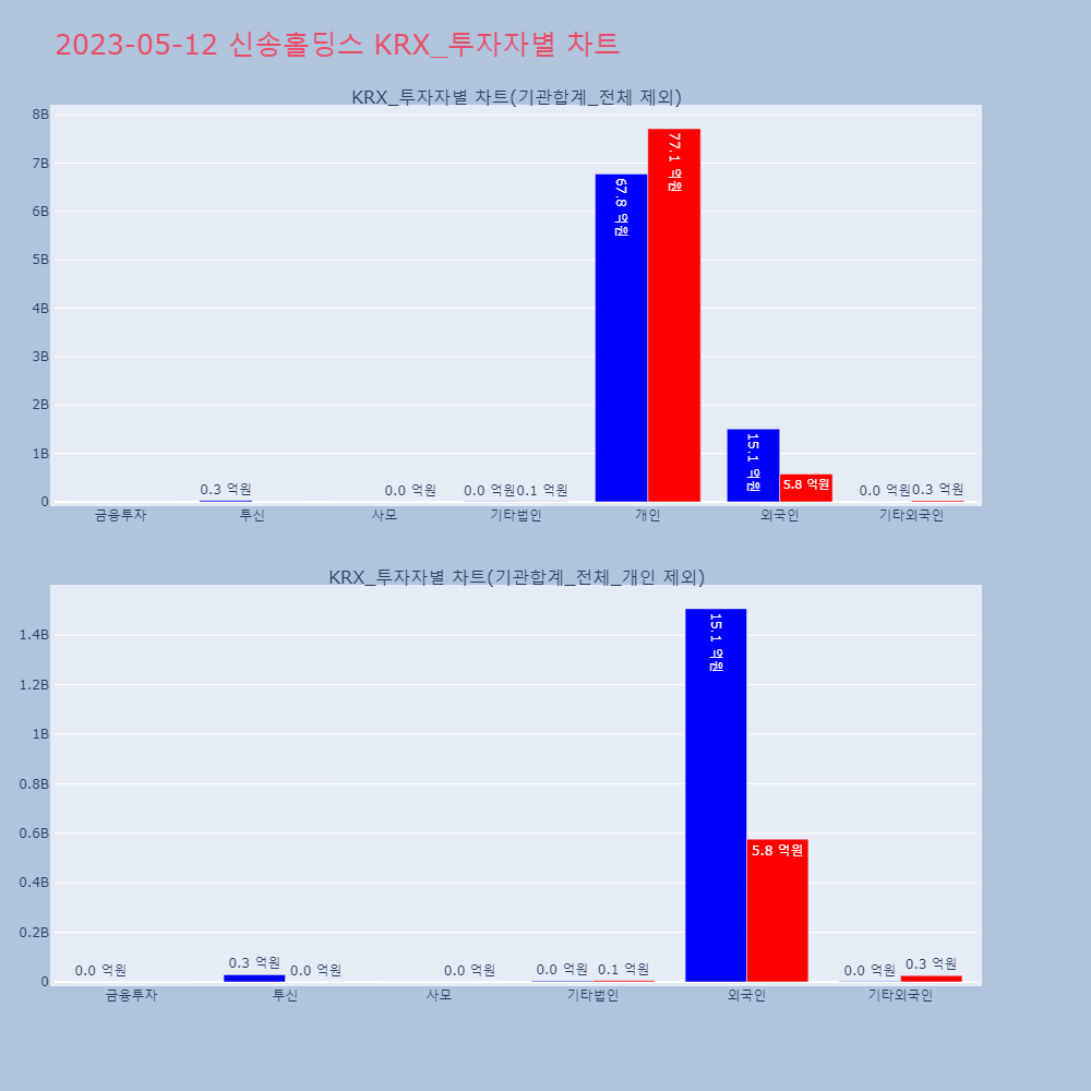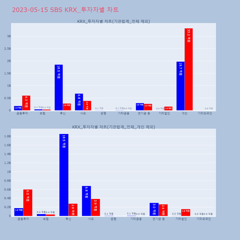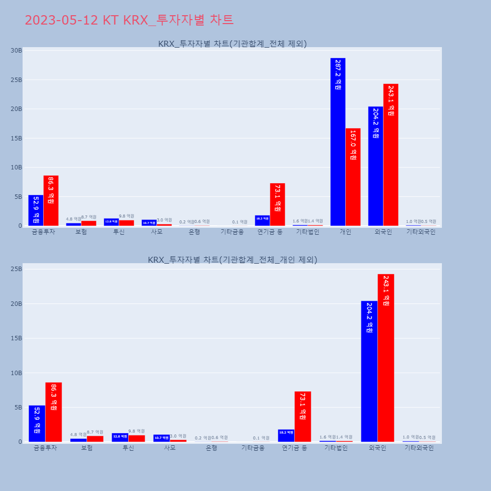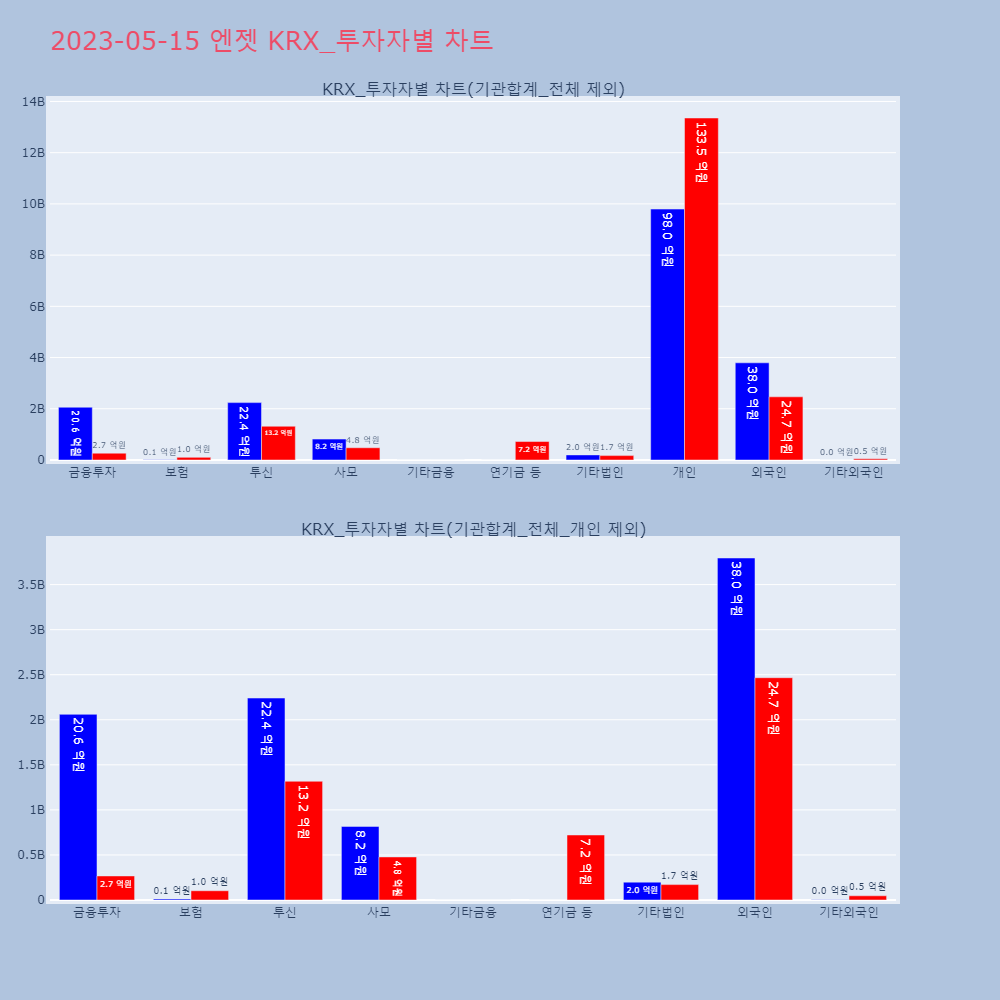 투자기관 | 매도량/금액(백) | 매수량/금액(백) | 순매수량/금액(백) |