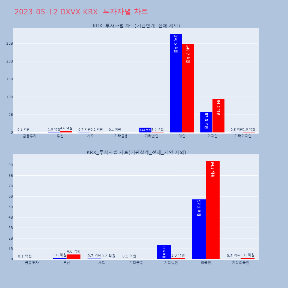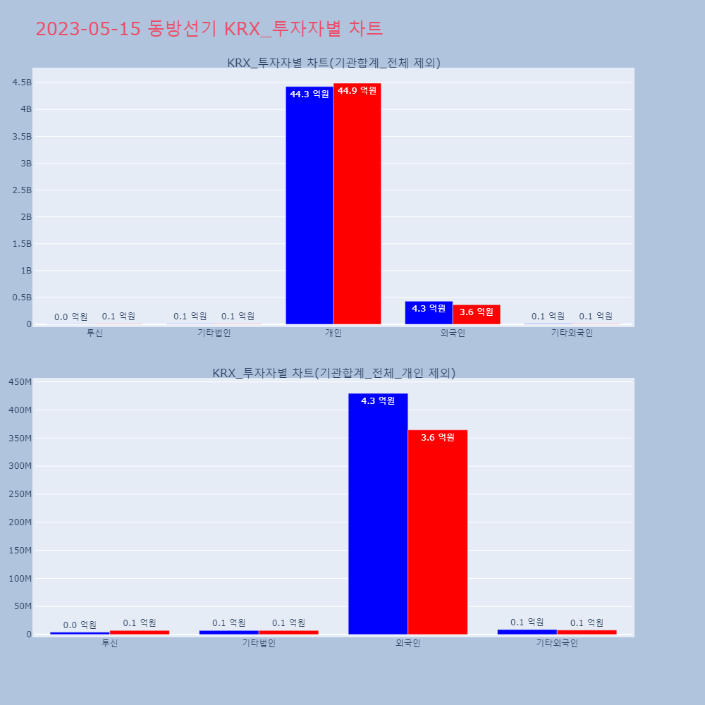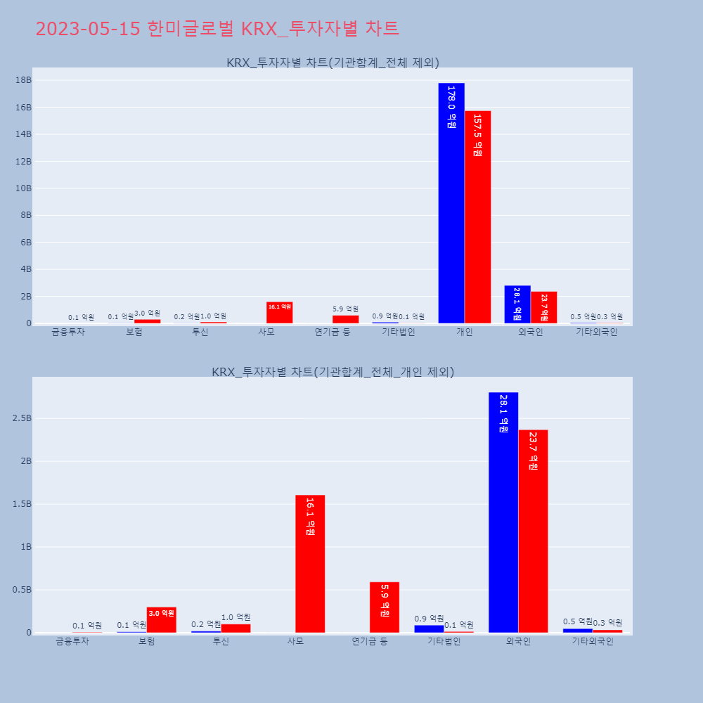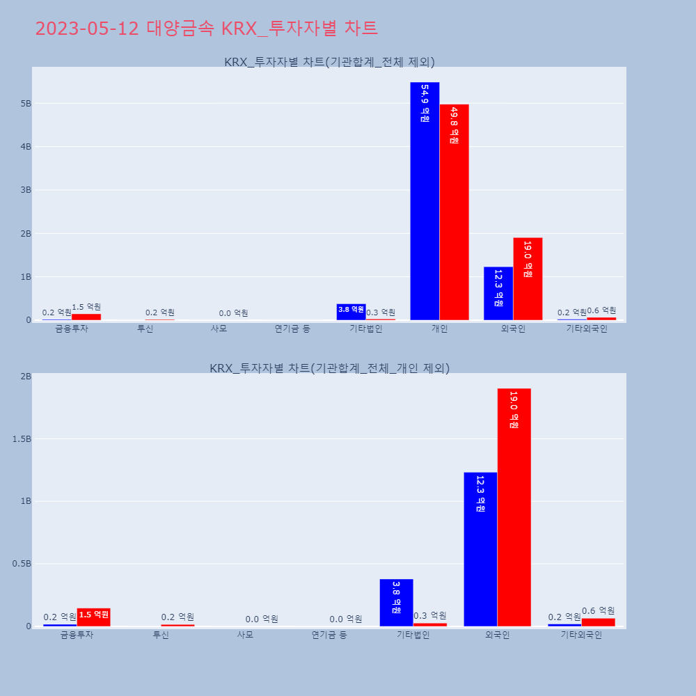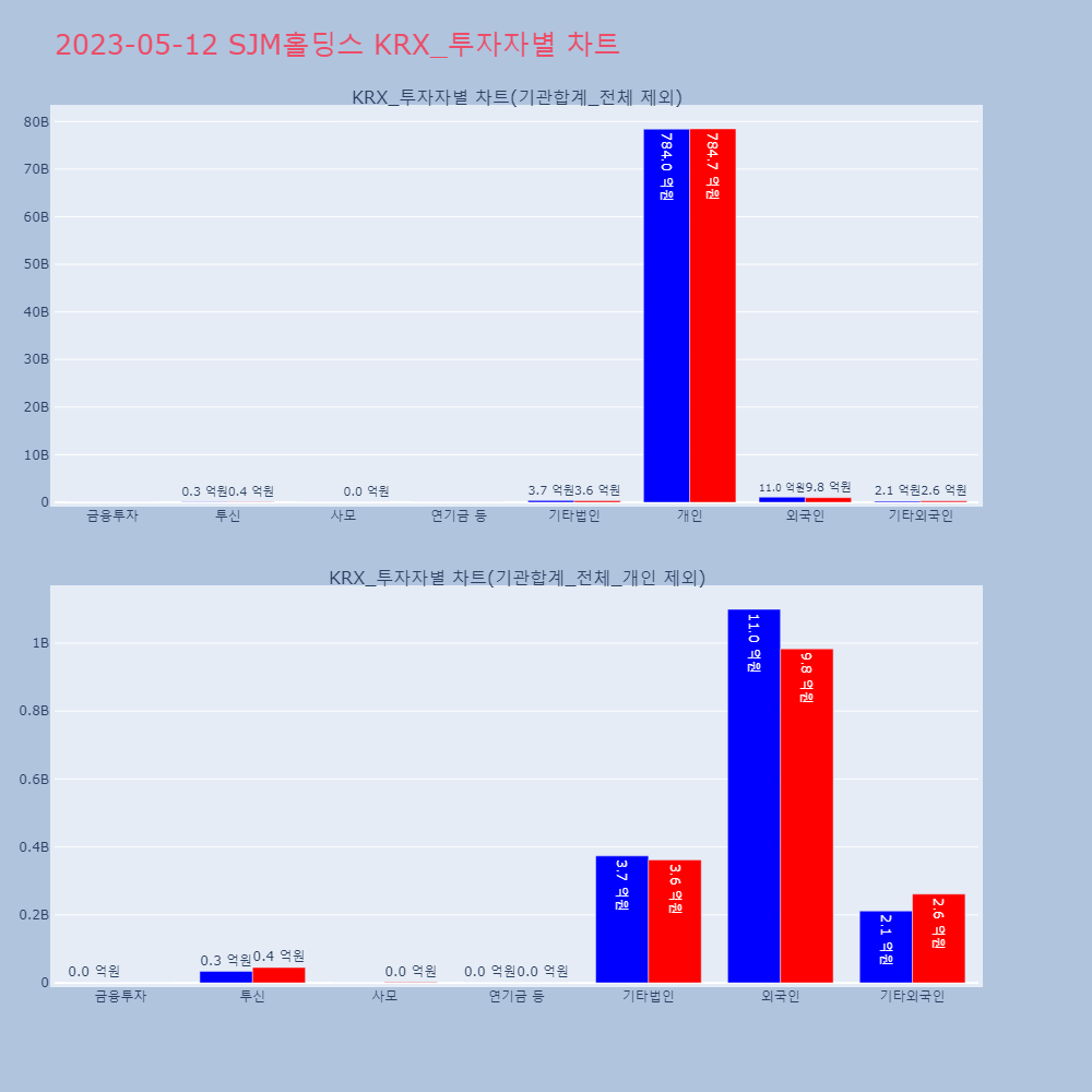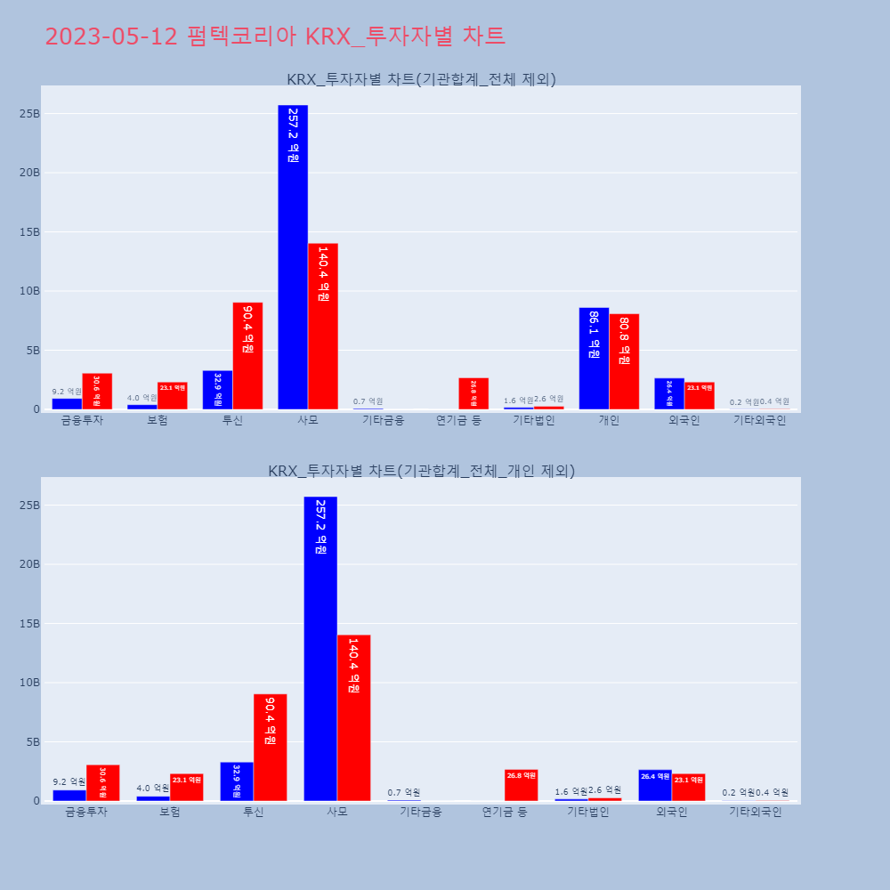 투자기관 | 매도량/금액(백) | 매수량/금액(백) | 순매수량/금액(백) |