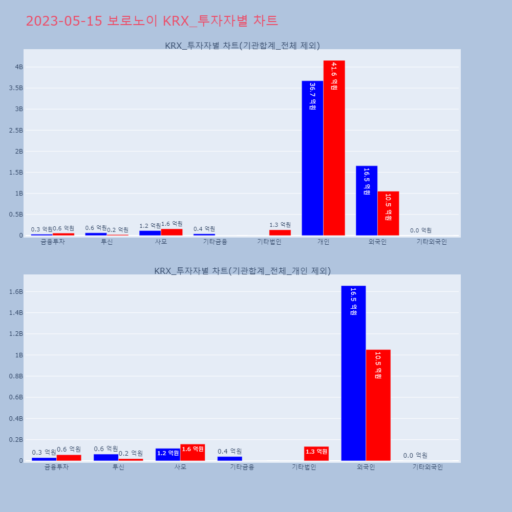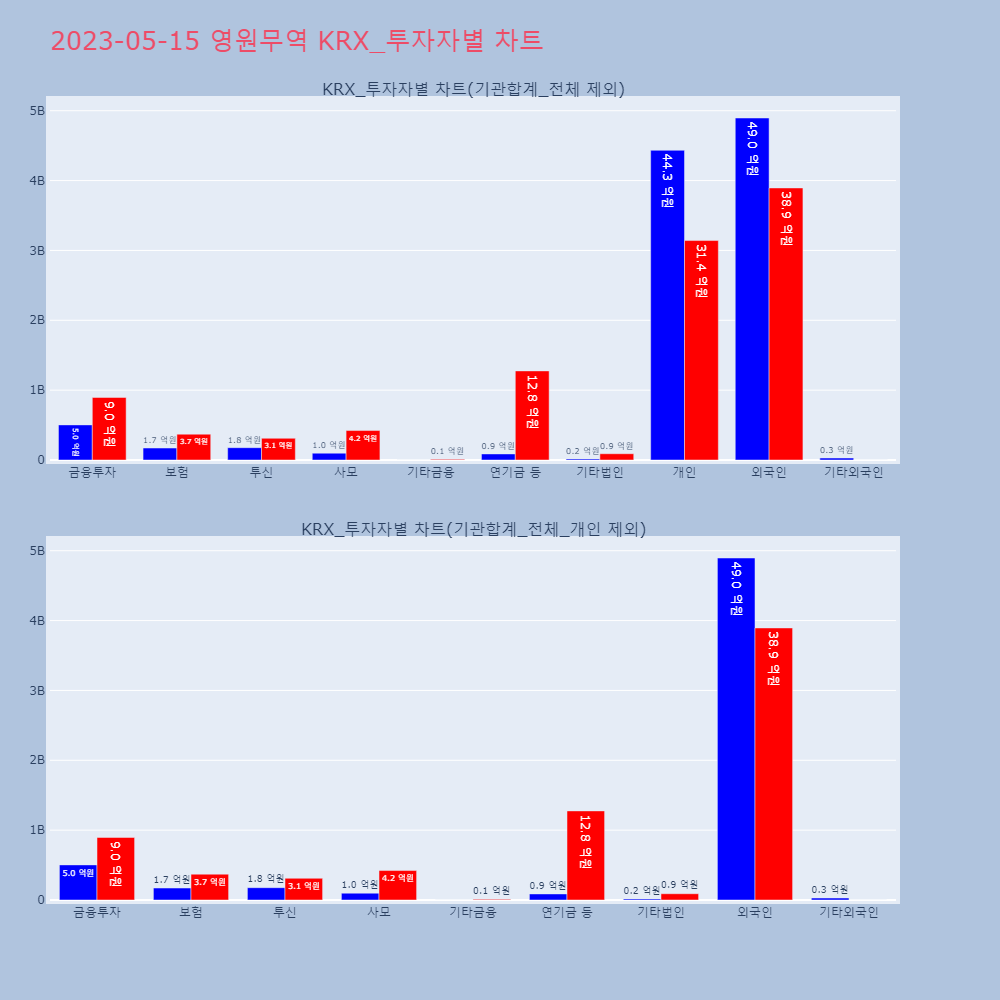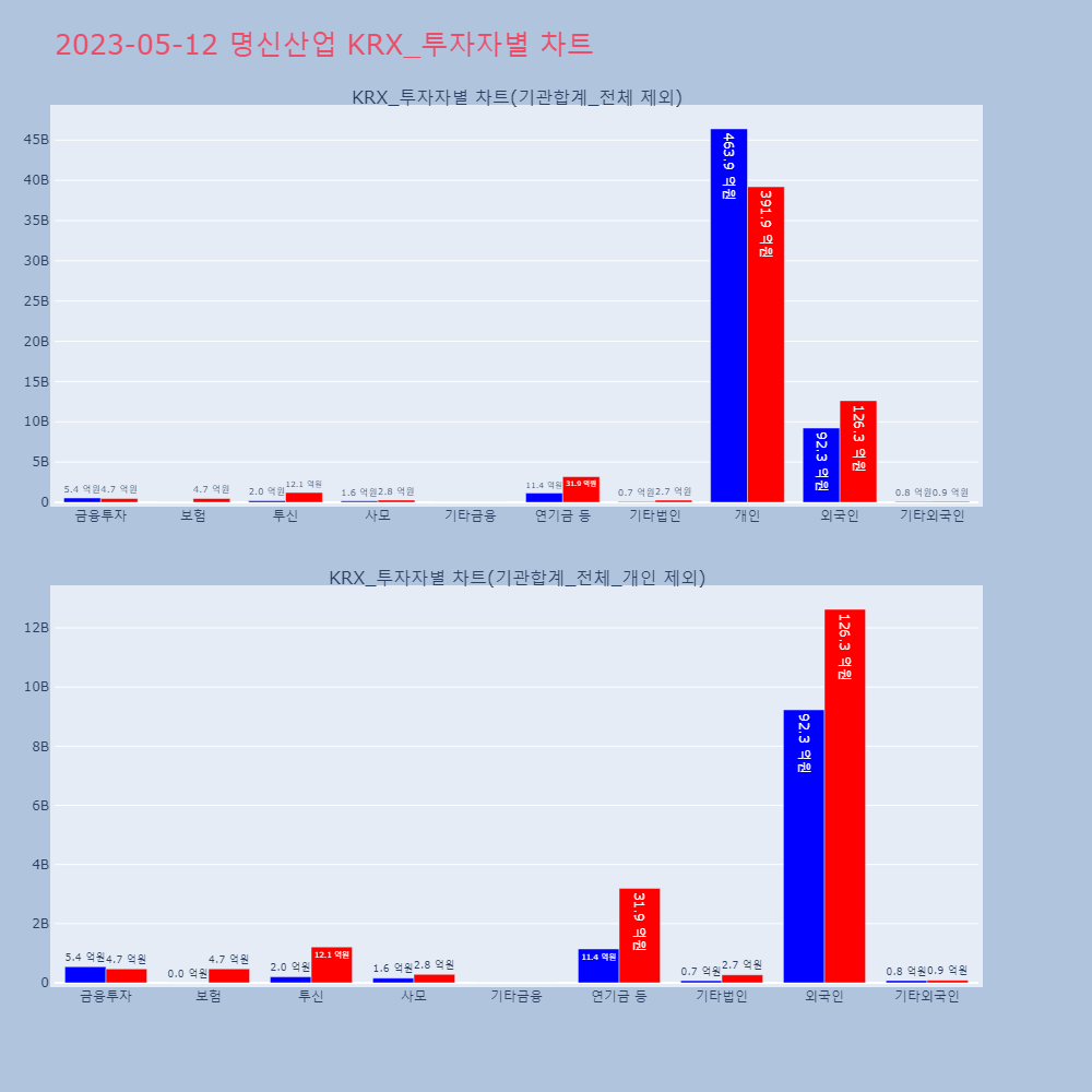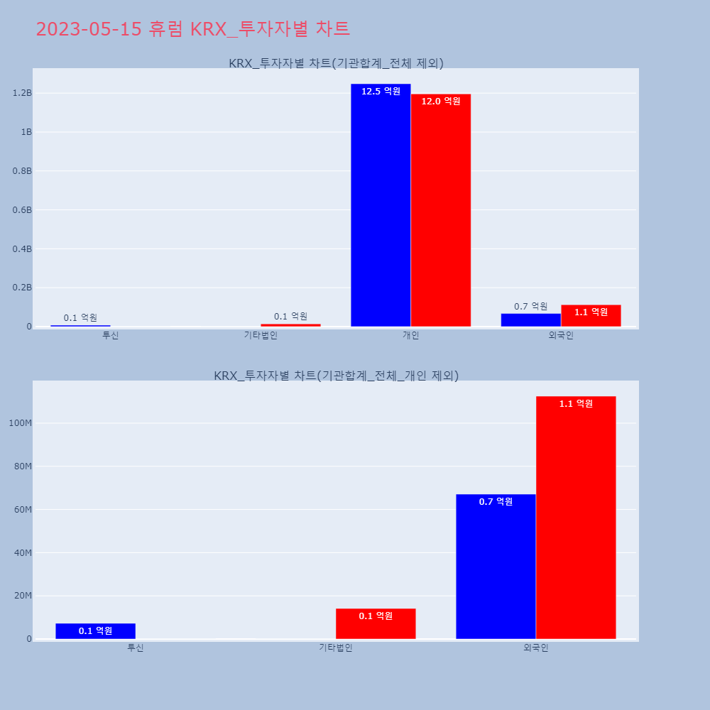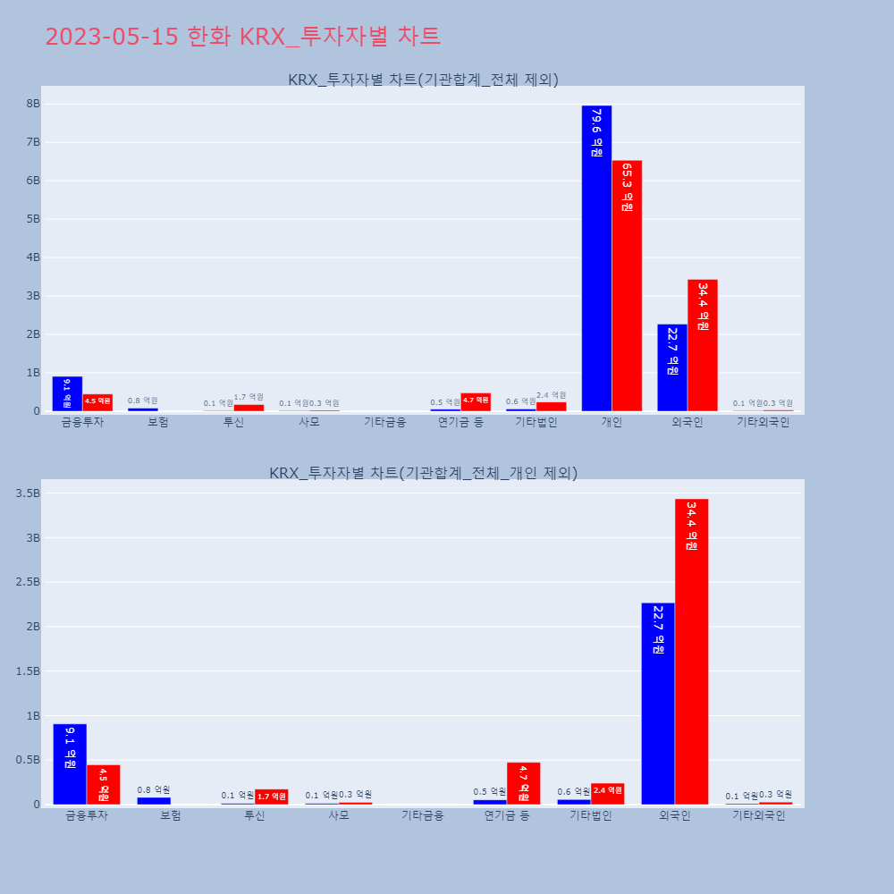 투자기관 | 매도량/금액(백) | 매수량/금액(백) | 순매수량/금액(백) |