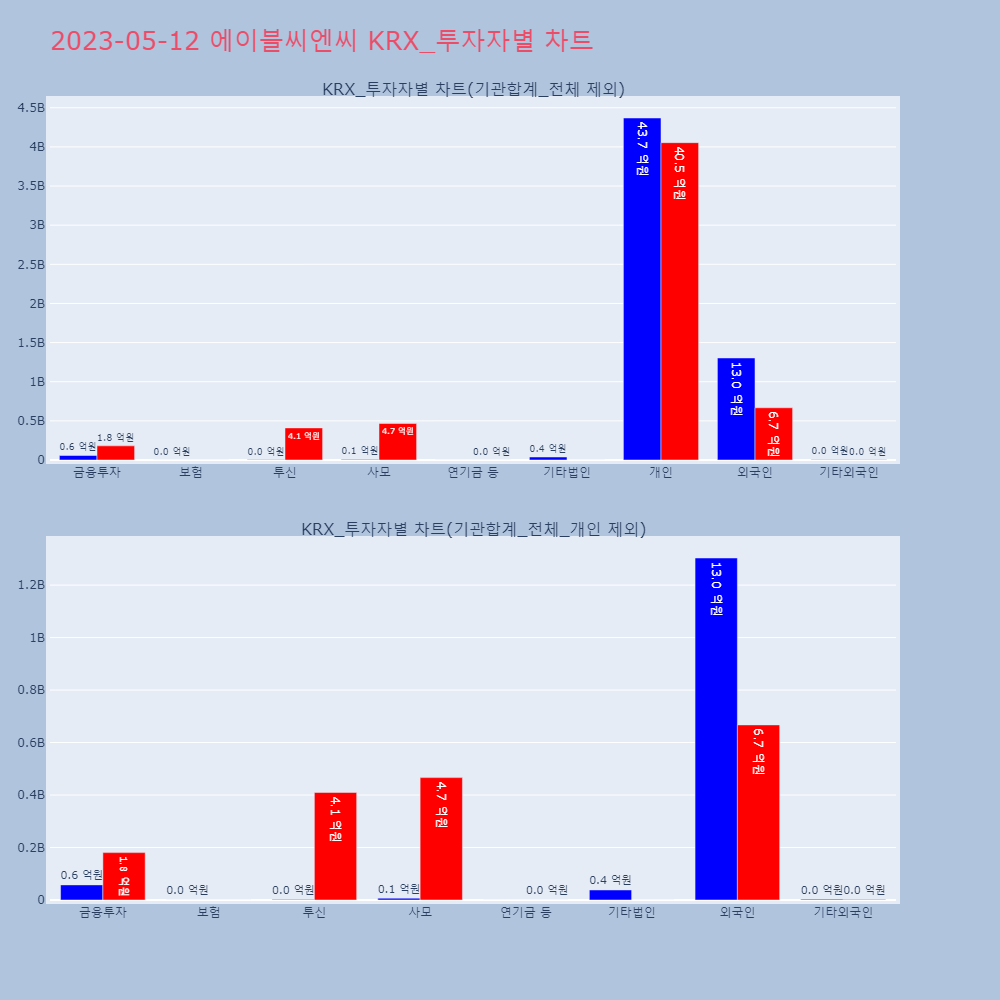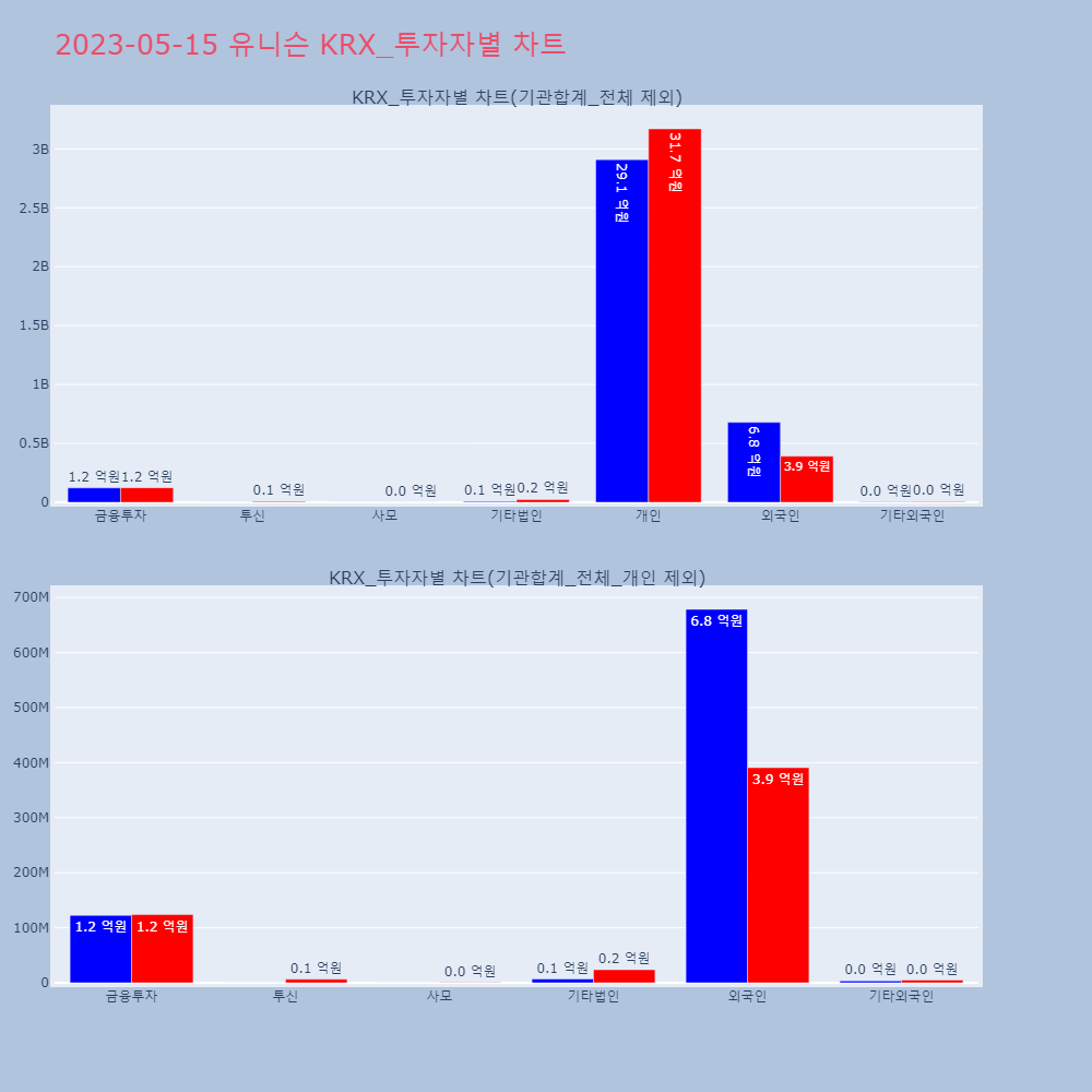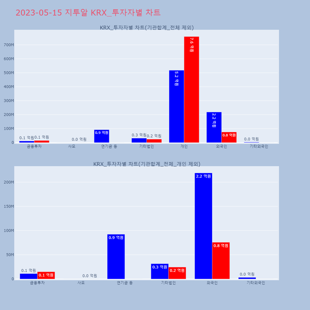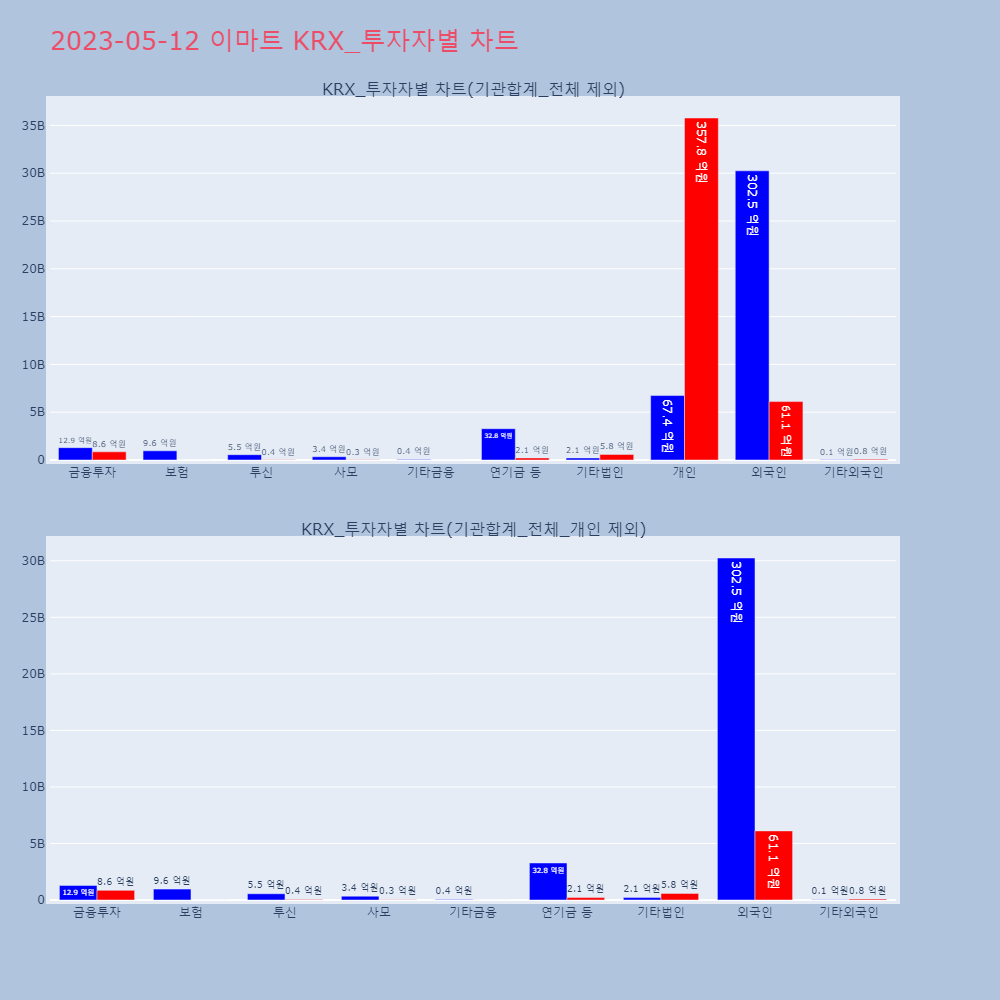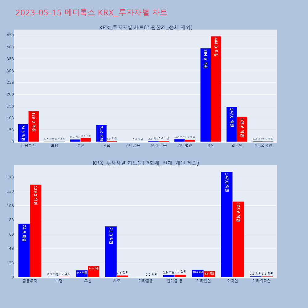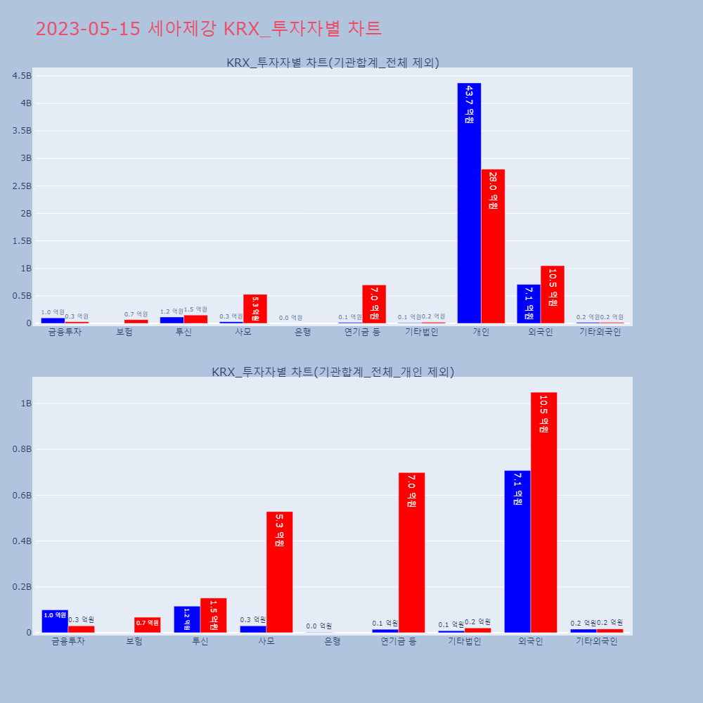 투자기관 | 매도량/금액(백) | 매수량/금액(백) | 순매수량/금액(백) |