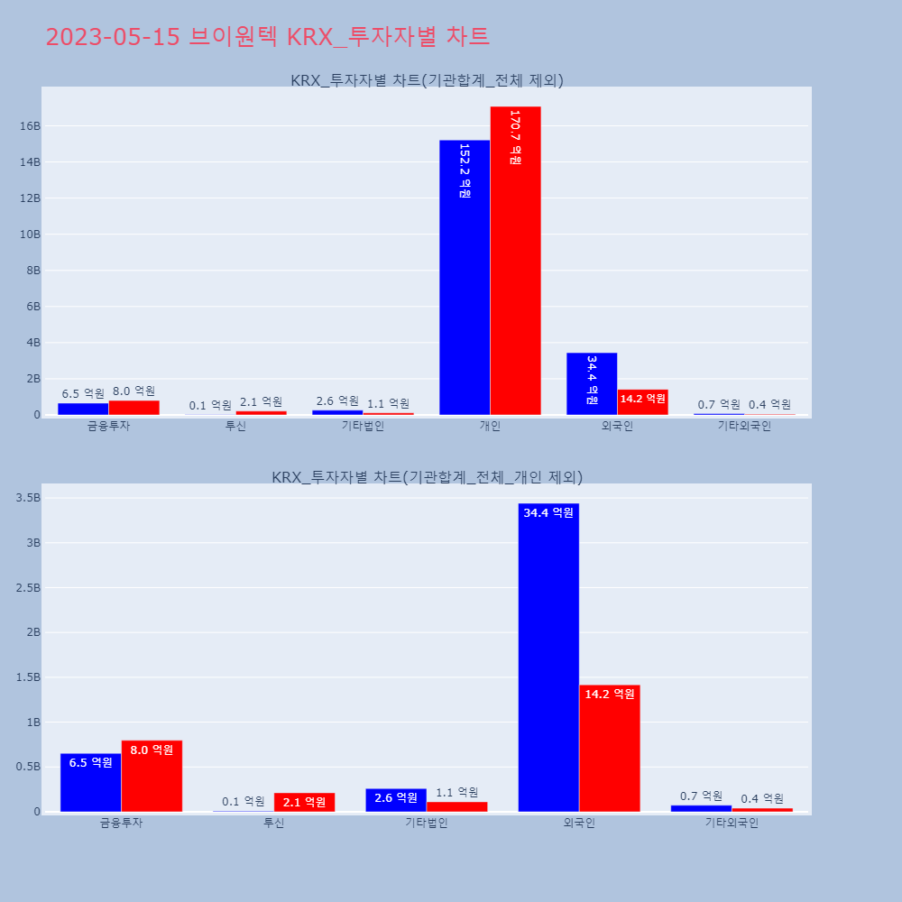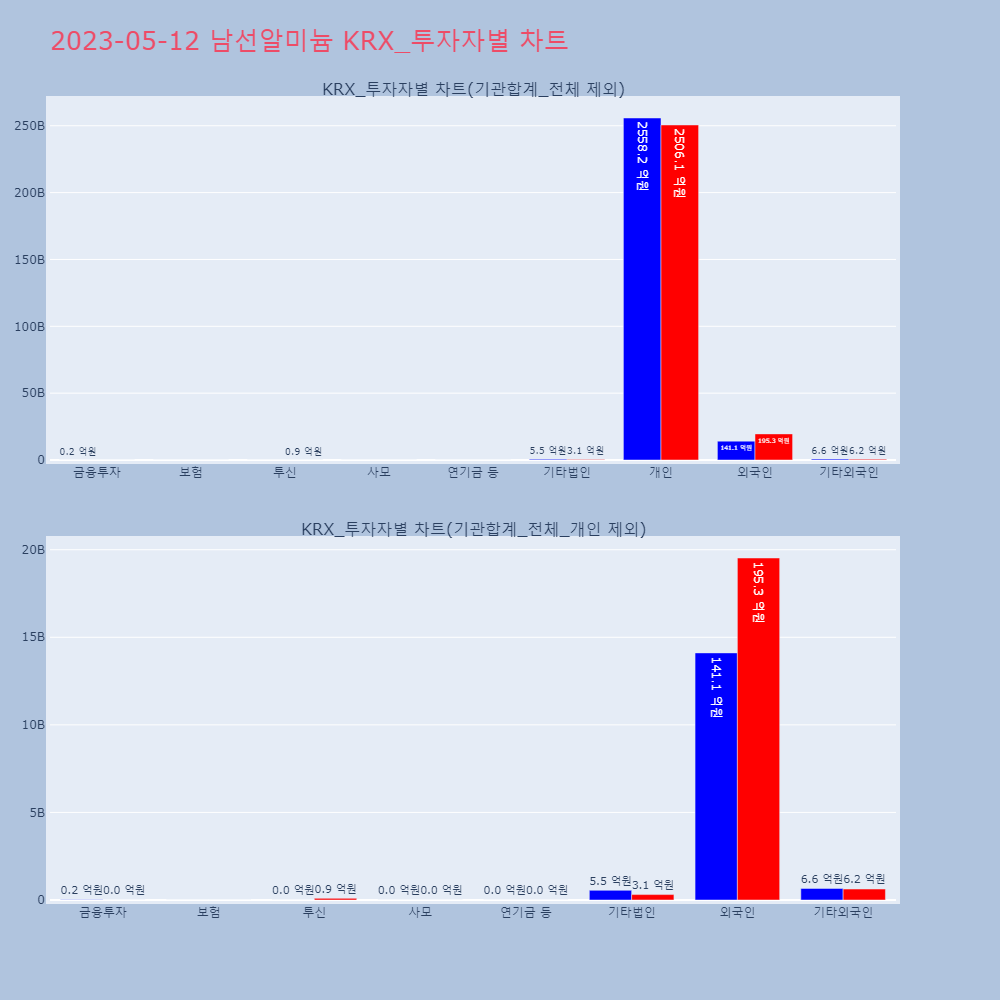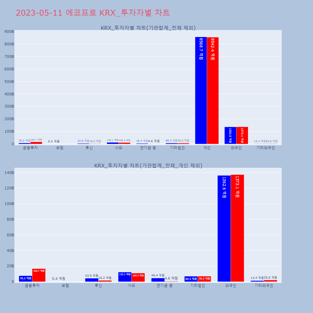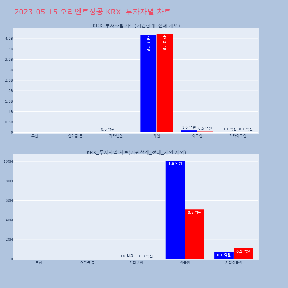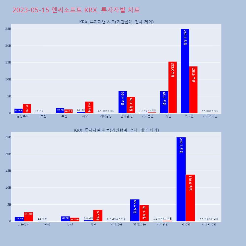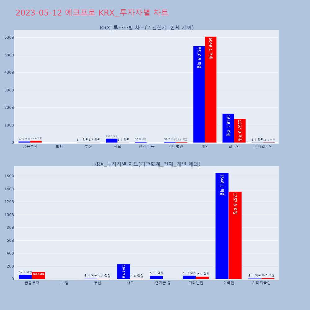 투자기관 | 매도량/금액(백) | 매수량/금액(백) | 순매수량/금액(백) |