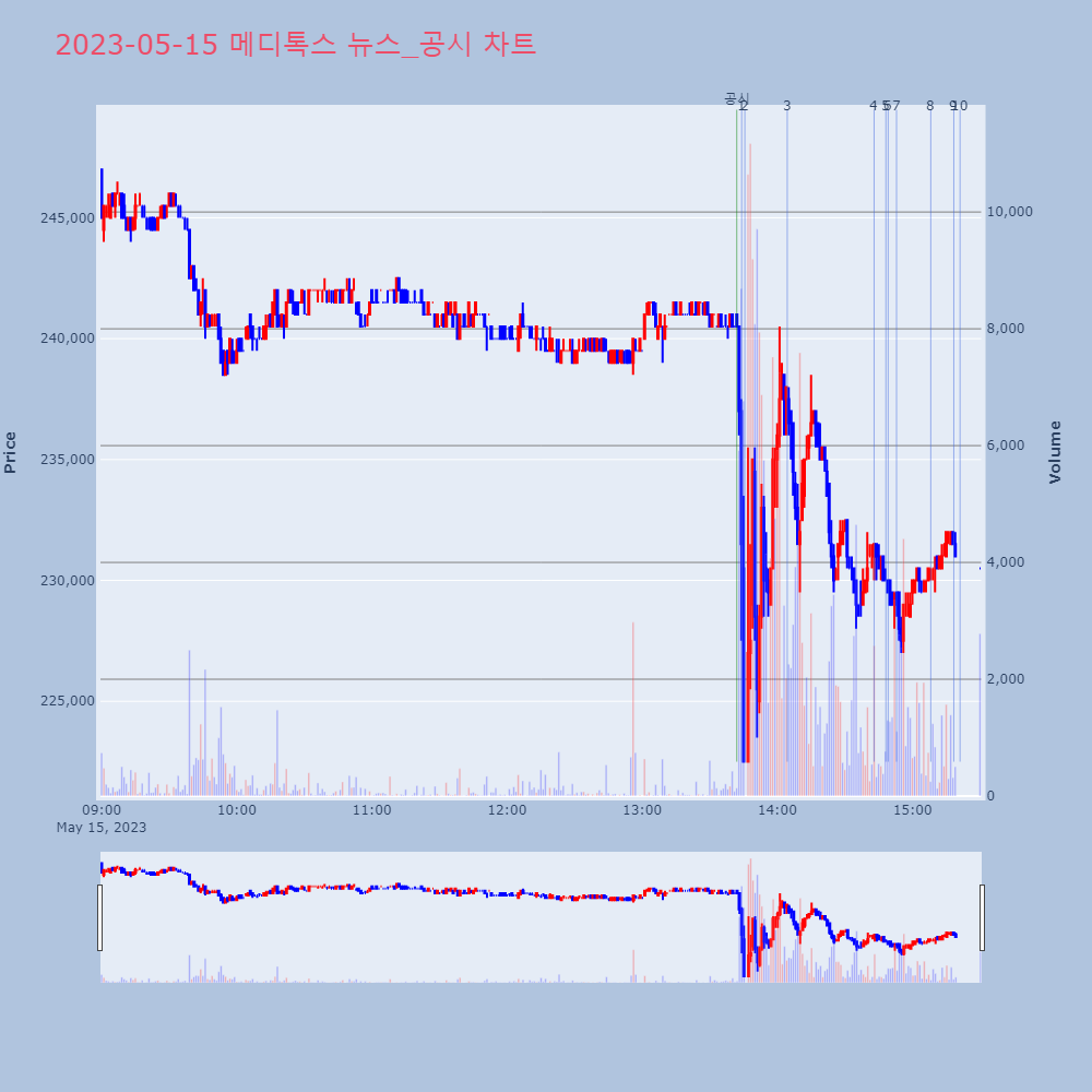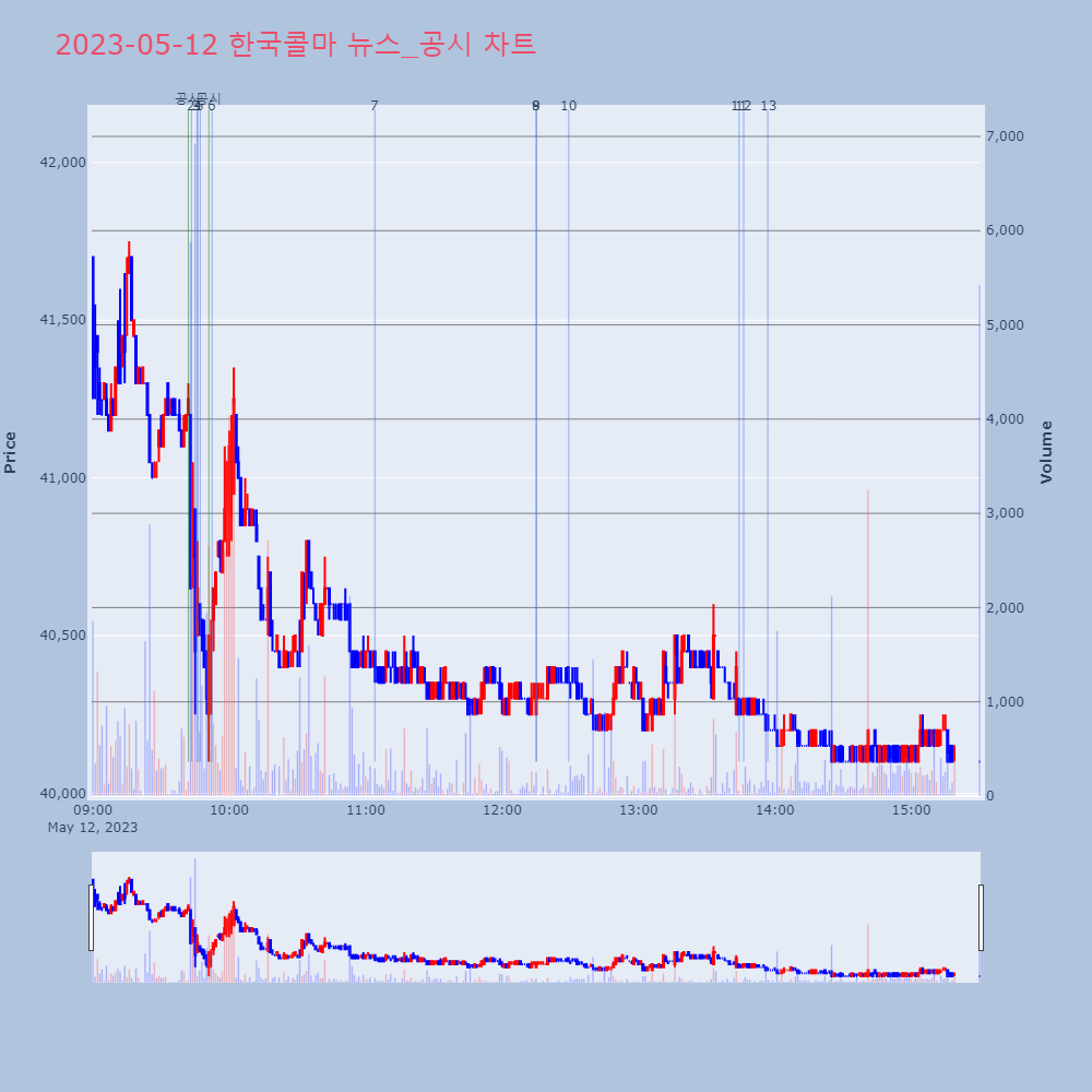 5 | 코스메카코리아, +12.40% VI 발동코스메카코리아가 VI가 발동했다. 전일 대비 12.40 | 조선경제 | 코스메카코리아 | 2023-05-15 13:59:04 |