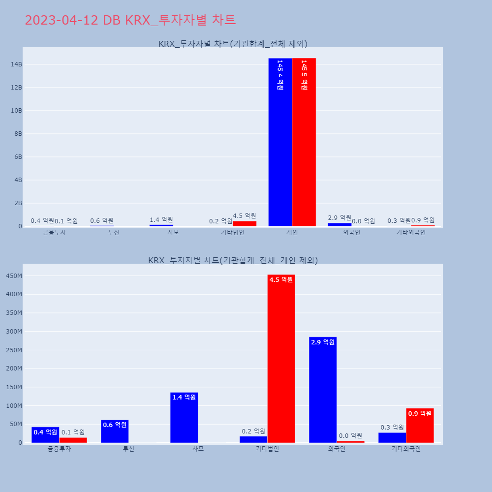 투자기관 | 매도량/금액(백) | 매수량/금액(백) | 순매수량/금액(백) |