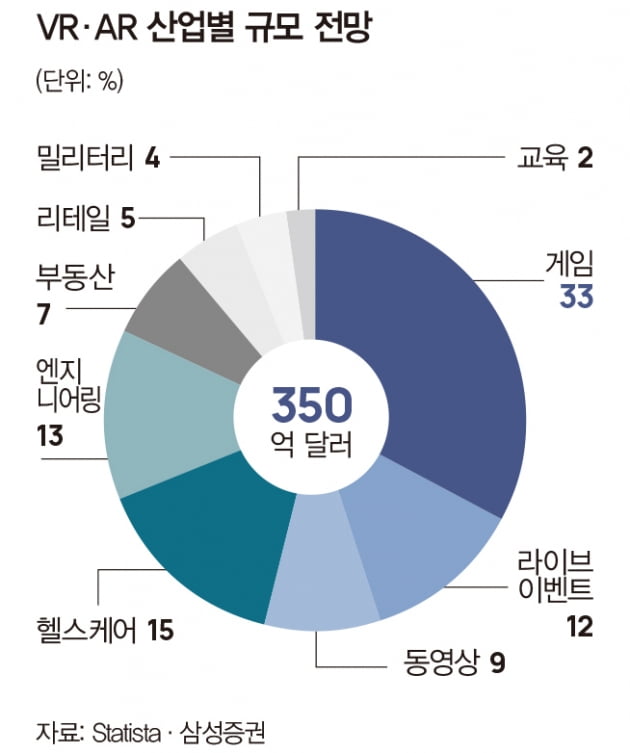 결국 시간이 지날수록 메타버스 관련 시장은 눈덩이처럼 커질 가능성이 높다. 스트래티지애널리틱스(SA)는 2025년 기준 메타버스 시장 규모를 현재의 6배 이상인 2800억 달러 규모로 전망했다. 프라이스워터하우스쿠퍼스(PwC)가 전망한 확장현실(XR)의 글로벌 파급효과는 2025년 기준 관련 520조 원(4764억 달러)에 달한다. 기대 아닌 현실, 애플도 진출한다 고도화된 메타버스의 구현에는 관련된 인프라가 필수적이다. 대표적인 것이 가상현실(VR)·증강현실(AR) 기기다. 5세대(5G) 및 다양한 하드웨어의 제약 요인들로 아직 초기 단계이지만 변화가 감지되고 있다. 팬데믹(세계적 대유행)과 아이폰의 5G 지원 등으로 VR·AR의 상승 곡선이 가팔라지고 있는 것이다.