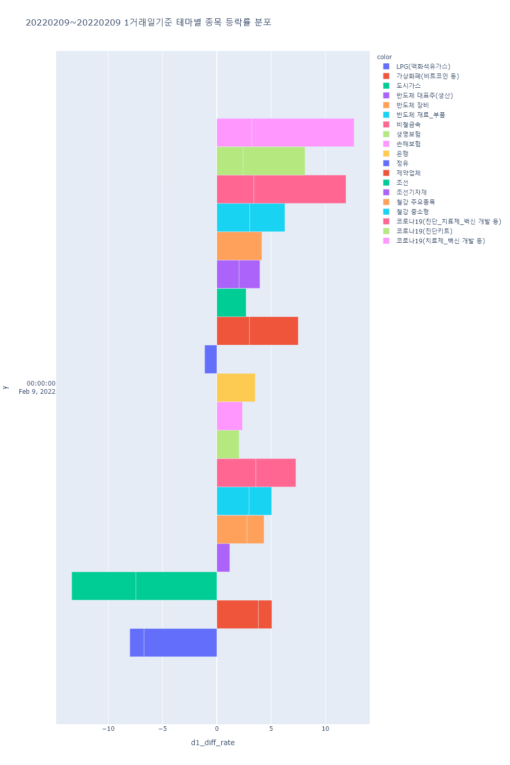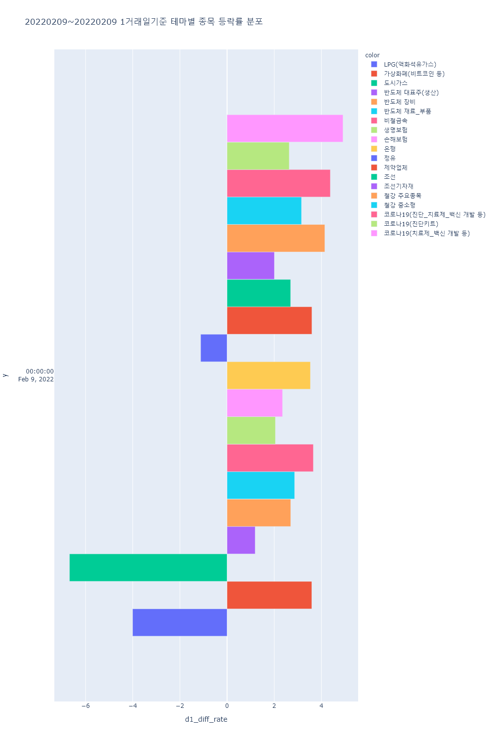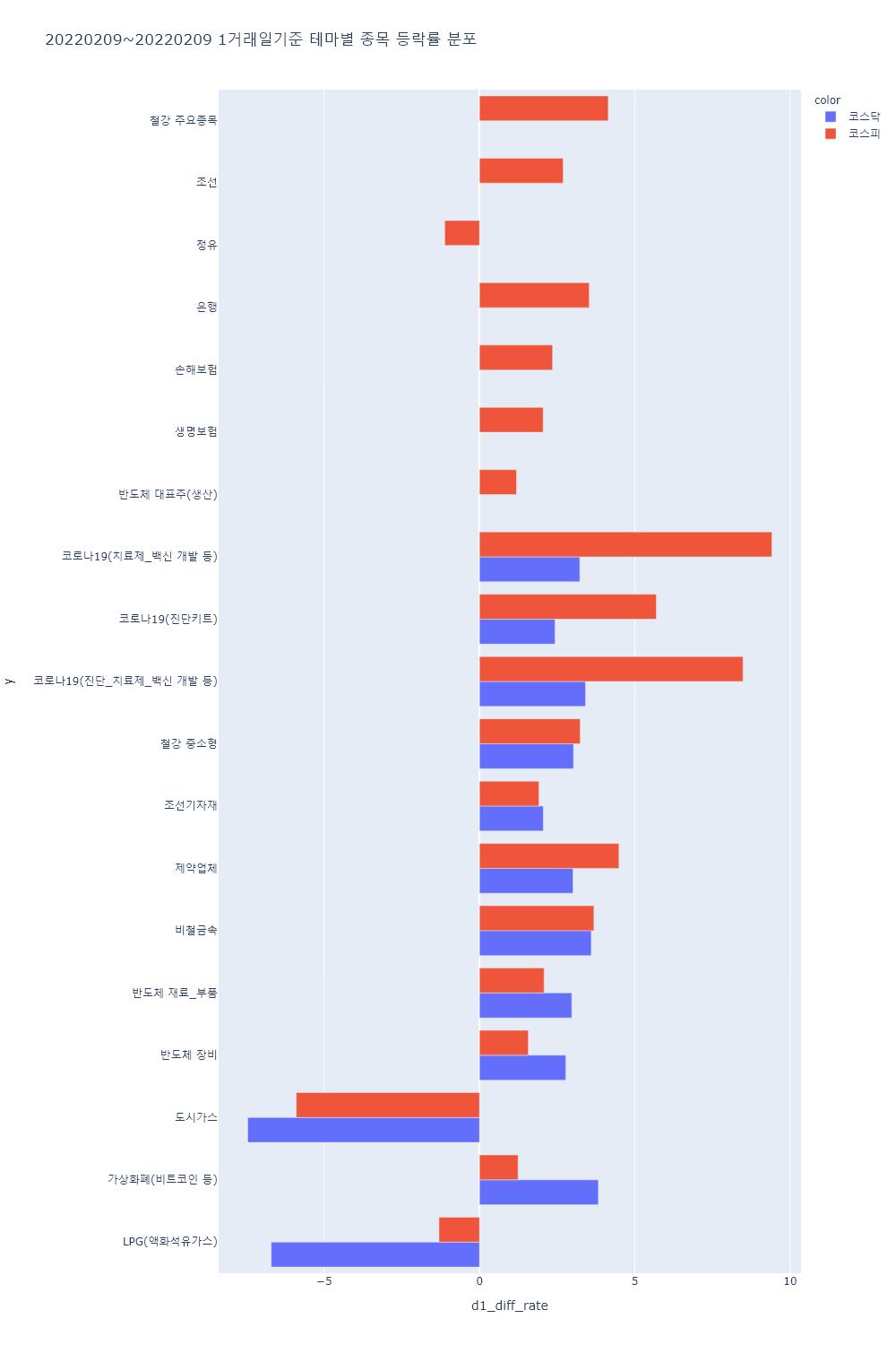 ▷이 외 화폐/금융자동화기기(디지털화폐 등), 일자리(취업), 키오스크, 캐릭터상품, 가상현실(VR), 증강현실(AR), 핵융합에너지, 메타버스, 제4이동통신, MLCC, NI(네트워크통합), 토스 관련주, 4대강 복원, 지능형로봇/인공지능(AI), 사물인터넷, 모바일솔루션, 마이데이터, 2차전지(장비), 폐배터리 관련주, 콜드체인, 국내 상장 중국기업, NFT 등의 테마가 하락률 상위를 기록.