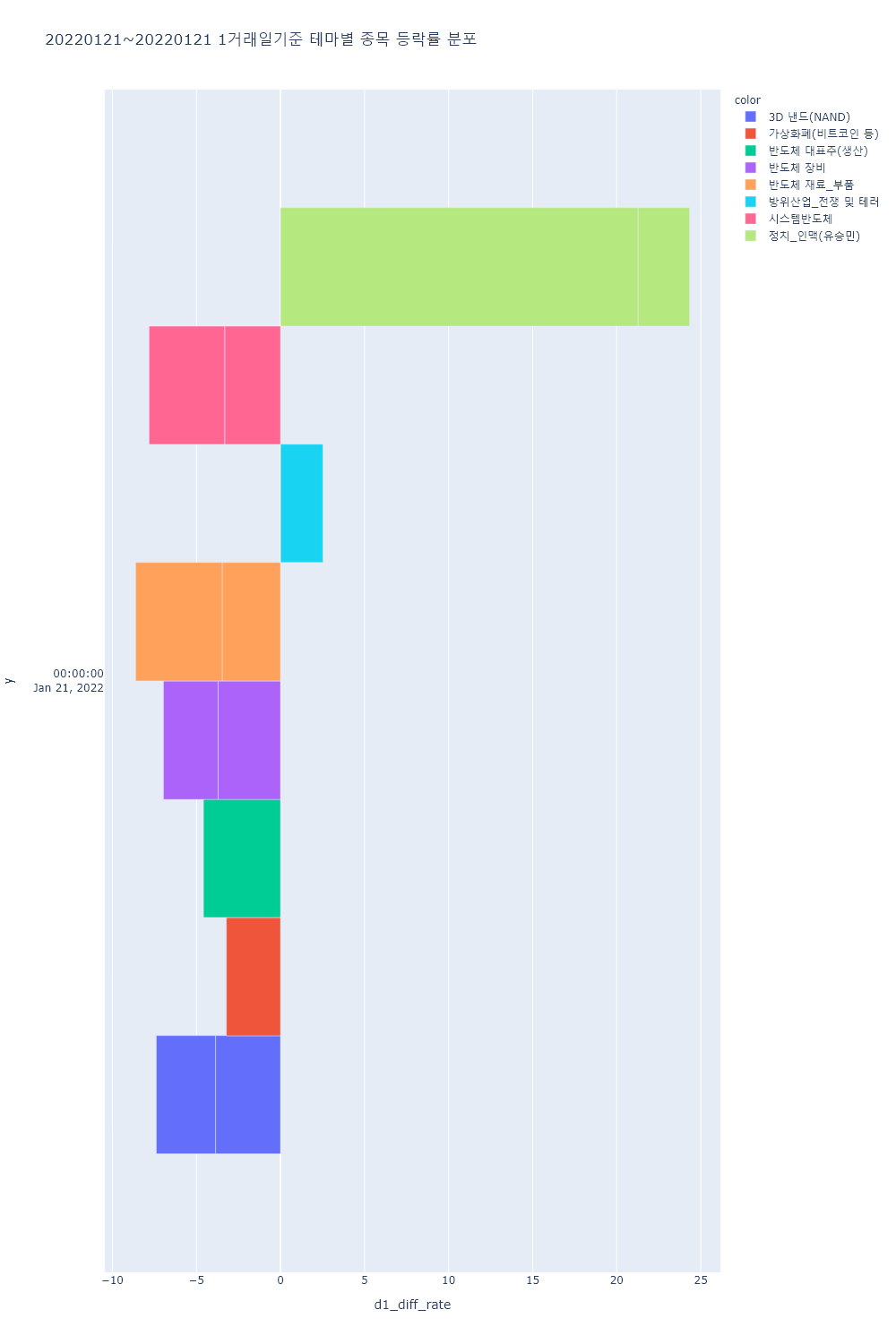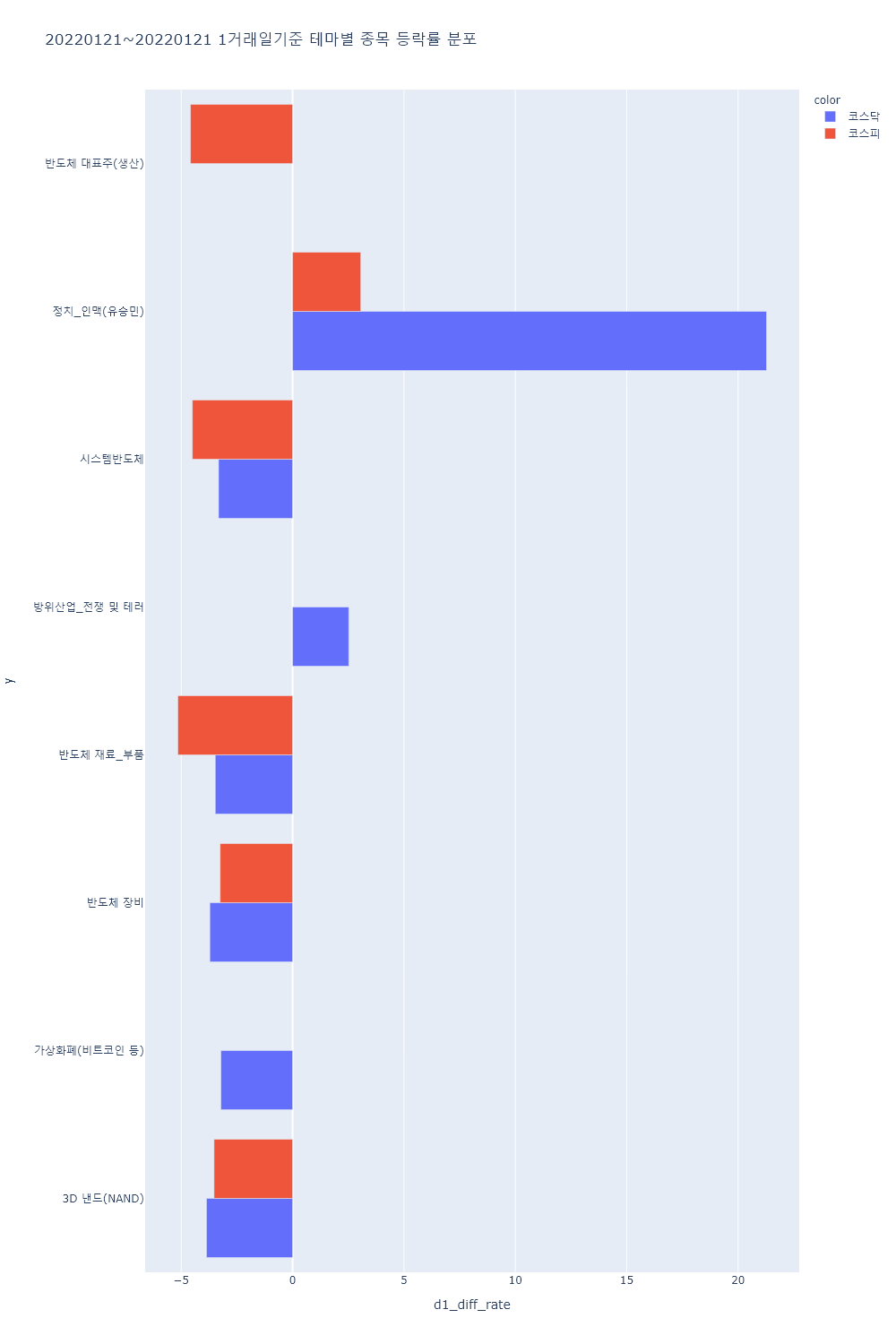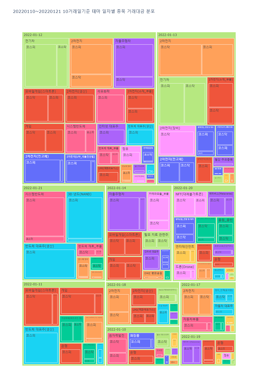 ▷이 외 화폐/금융자동화기기, 웹툰, 토스 관련주, 키오스크, 요소수 관련주, 탈모 치료 관련주, 야놀자 관련주, 쿠팡 관련주, 국내 상장 중국기업, 해저터널, 테마파크, 비료, 코로나19(스푸트니크V), 코로나19(화이자), 그래핀, 마스크, 광고, 5G, 폐기물처리 등의 테마가 하락률 상위를 기록하는 등 증시 급락 속 대부분 테마가 하락.