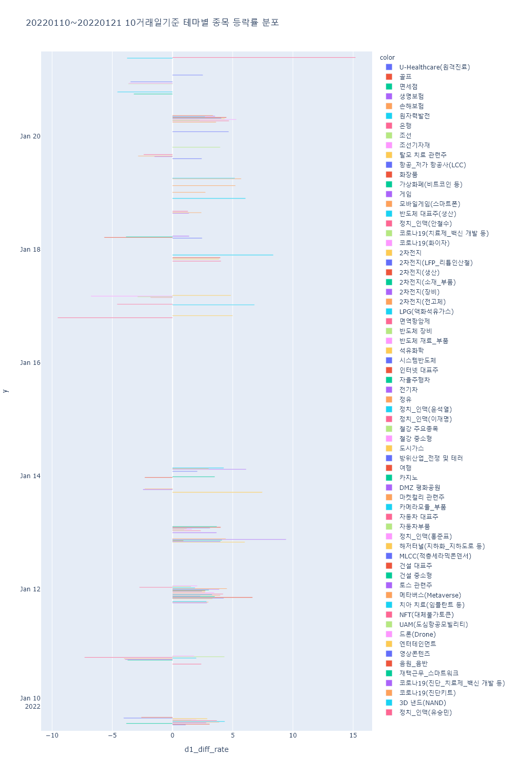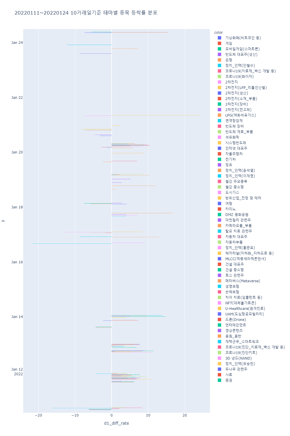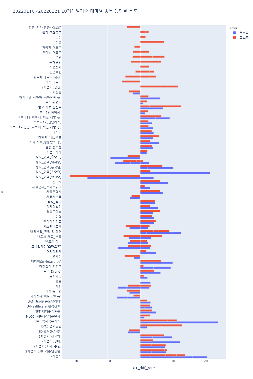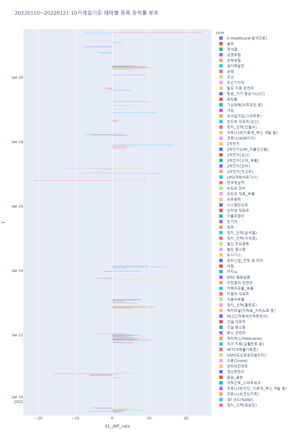 ▷이 외 화폐/금융자동화기기, 웹툰, 토스 관련주, 키오스크, 요소수 관련주, 탈모 치료 관련주, 야놀자 관련주, 쿠팡 관련주, 국내 상장 중국기업, 해저터널, 테마파크, 비료, 코로나19(스푸트니크V), 코로나19(화이자), 그래핀, 마스크, 광고, 5G, 폐기물처리 등의 테마가 하락률 상위를 기록하는 등 증시 급락 속 대부분 테마가 하락.