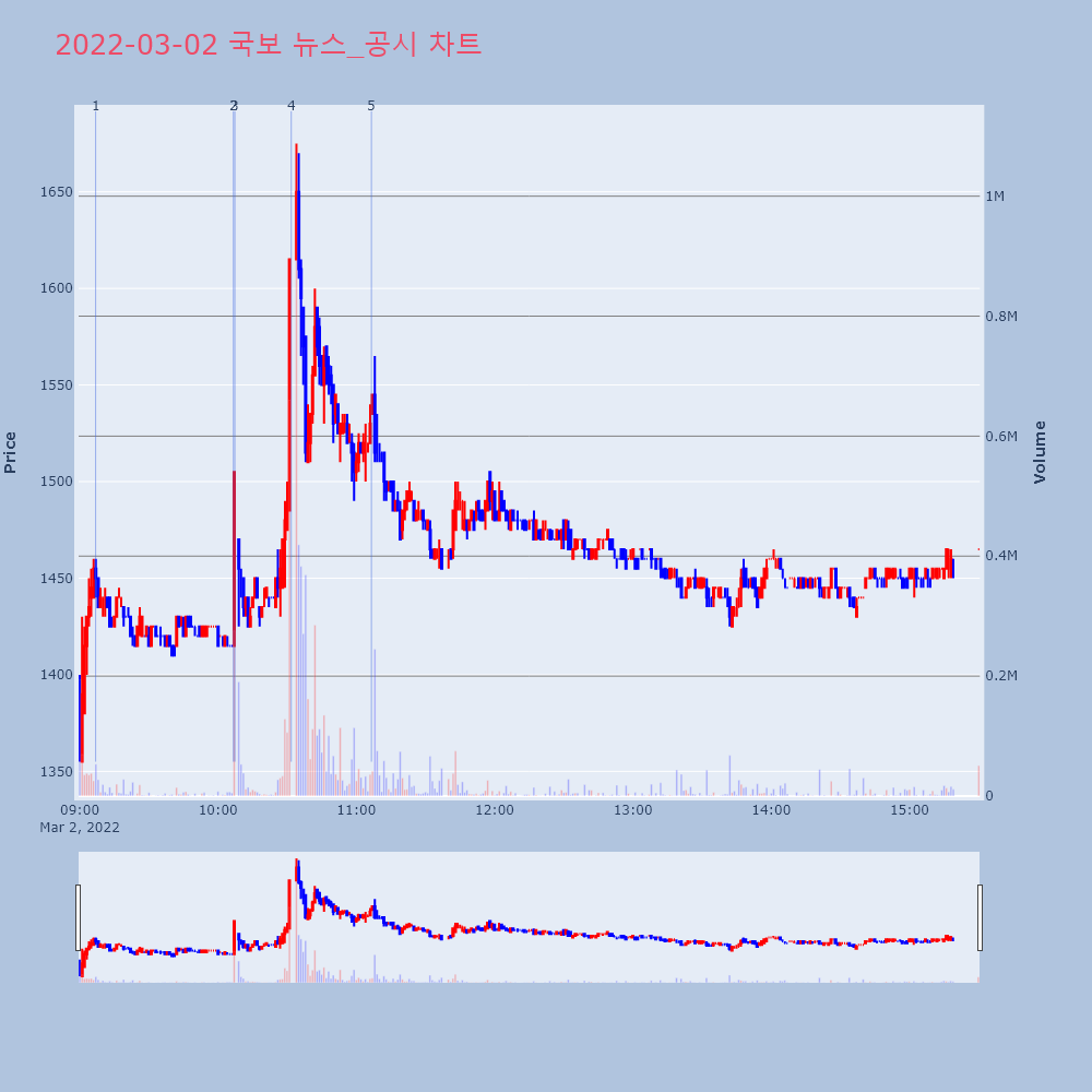 3 | 국보, +7.50% VI 발동국보(001140)가 VI가 발동했다. 전일 대비 7. | 조선경제 | 국보 | 2022-03-02 10:07:17 |