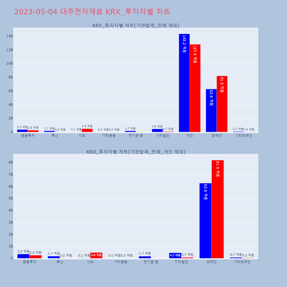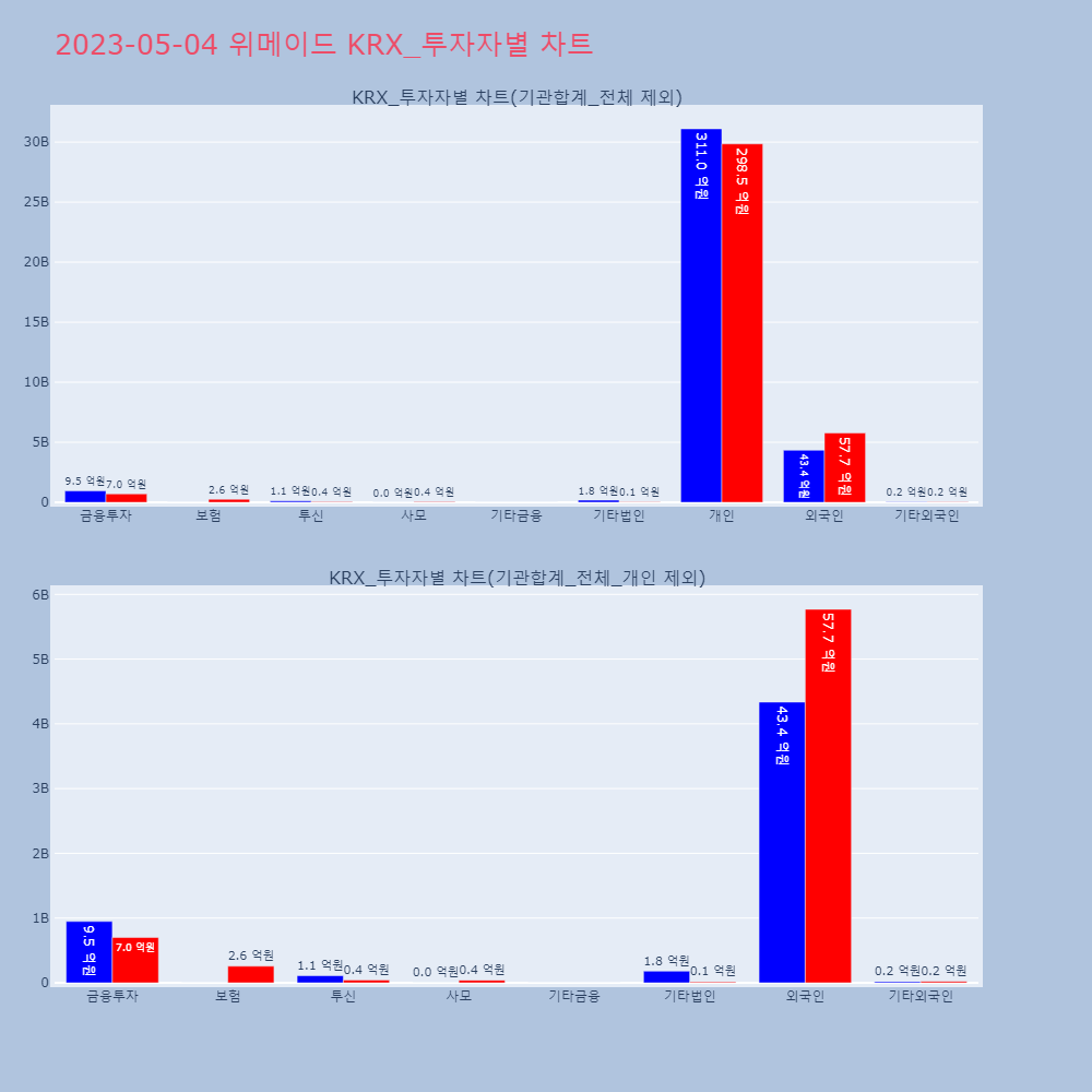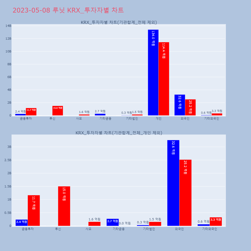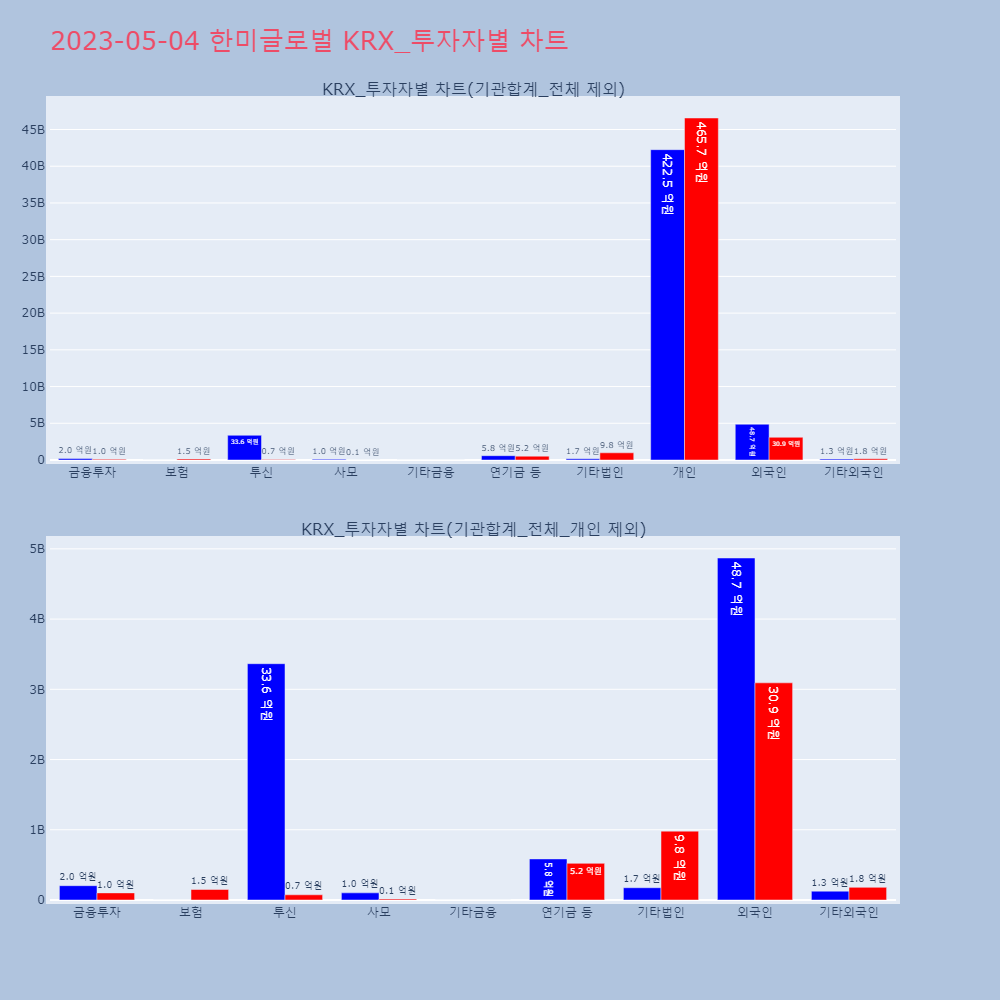 투자기관 | 매도량/금액(백) | 매수량/금액(백) | 순매수량/금액(백) |