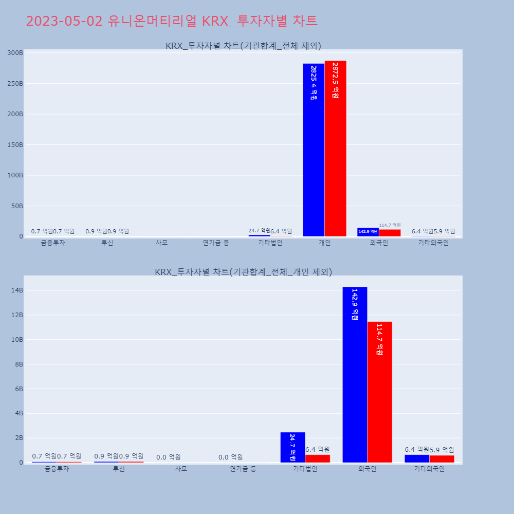 투자기관 | 매도량/금액(백) | 매수량/금액(백) | 순매수량/금액(백) |