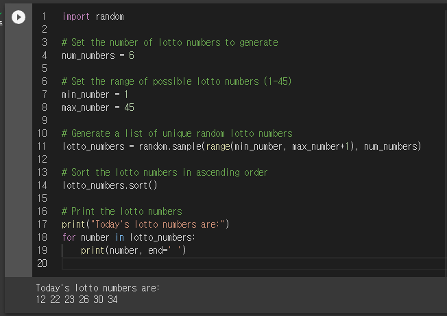 lotto_numbers = random.sample(range(min_number, max_number+1), num_numbers)