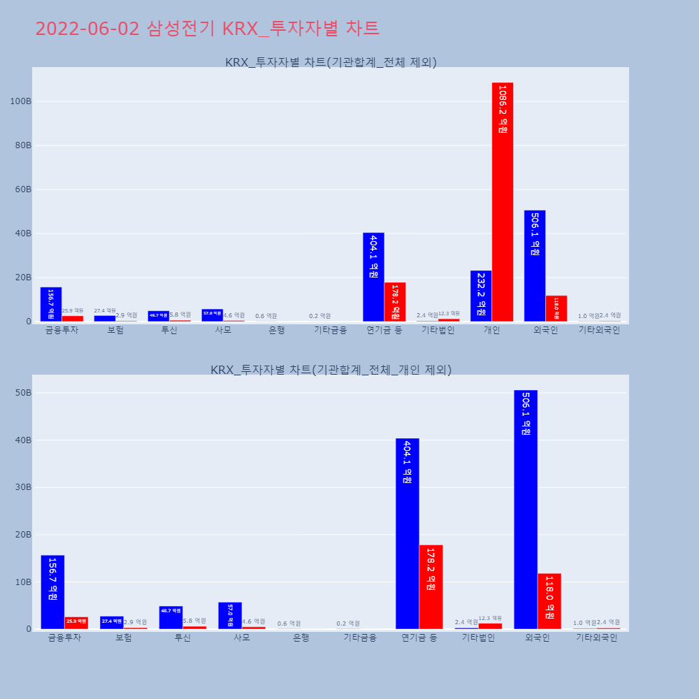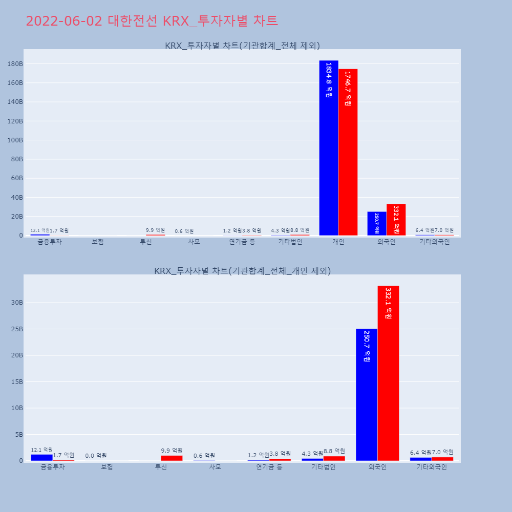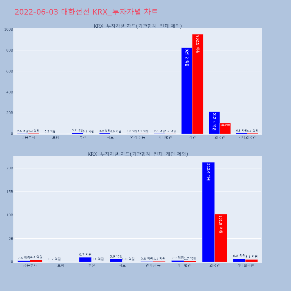 | 투자기관 | 거래량_매도 | 거래량_매수 | 거래량_순매수 | 거래대금_매도 | 거래대금_매수 | 거래대금_순매수 |