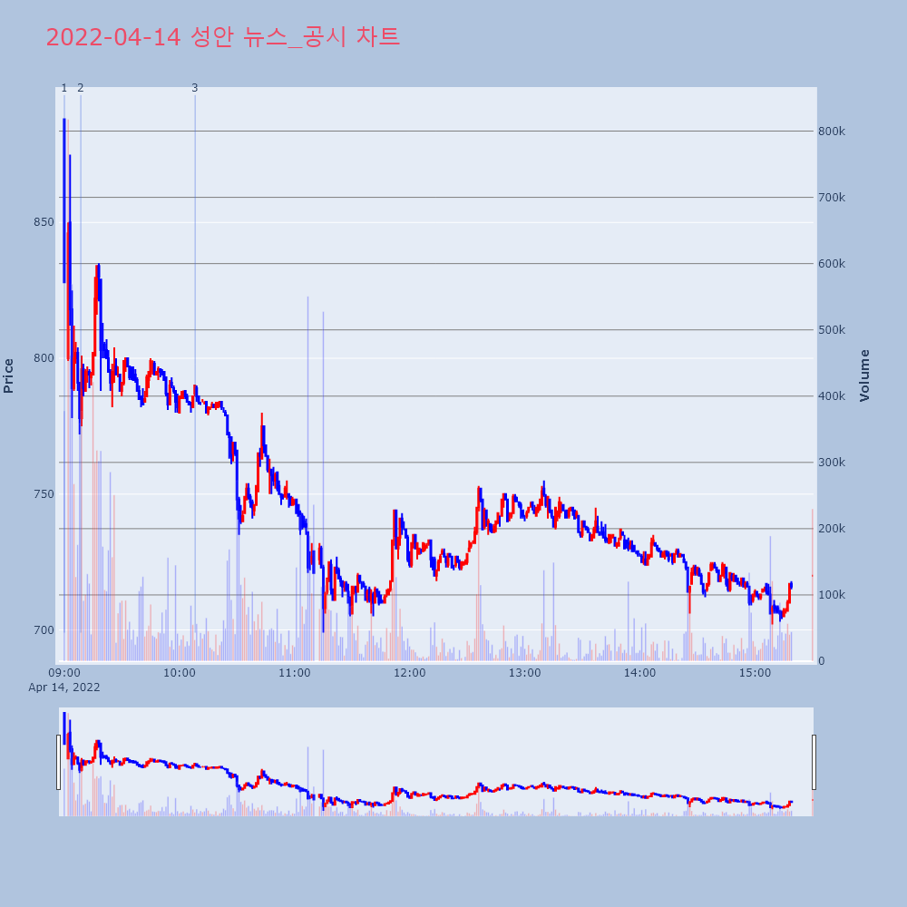 | 2 | '성안' 52주 신고가 경신, 주가 조정 중, 단기·중기 이평선 정배열◆ 차트 분석- 주가 조정 중, 단기·중기 이평선 | 한경/증권 | 성안 | 2022-04-14 09:08:36 |