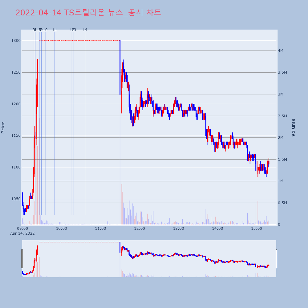 ▷전일 장 마감 후 유가증권시장본부는 동사에 대해 개선계획 이행 여부에 대한 심의결과 상장유지 결정(매매거래재개일:2022-04-14) 공시. 동사는 지난 2021년3월 조회공시요구(감사의견비적정설)로 매매거래가 정지된 바 있음.
